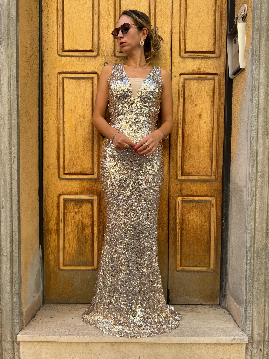 abito a sirena tempestato da paillettes