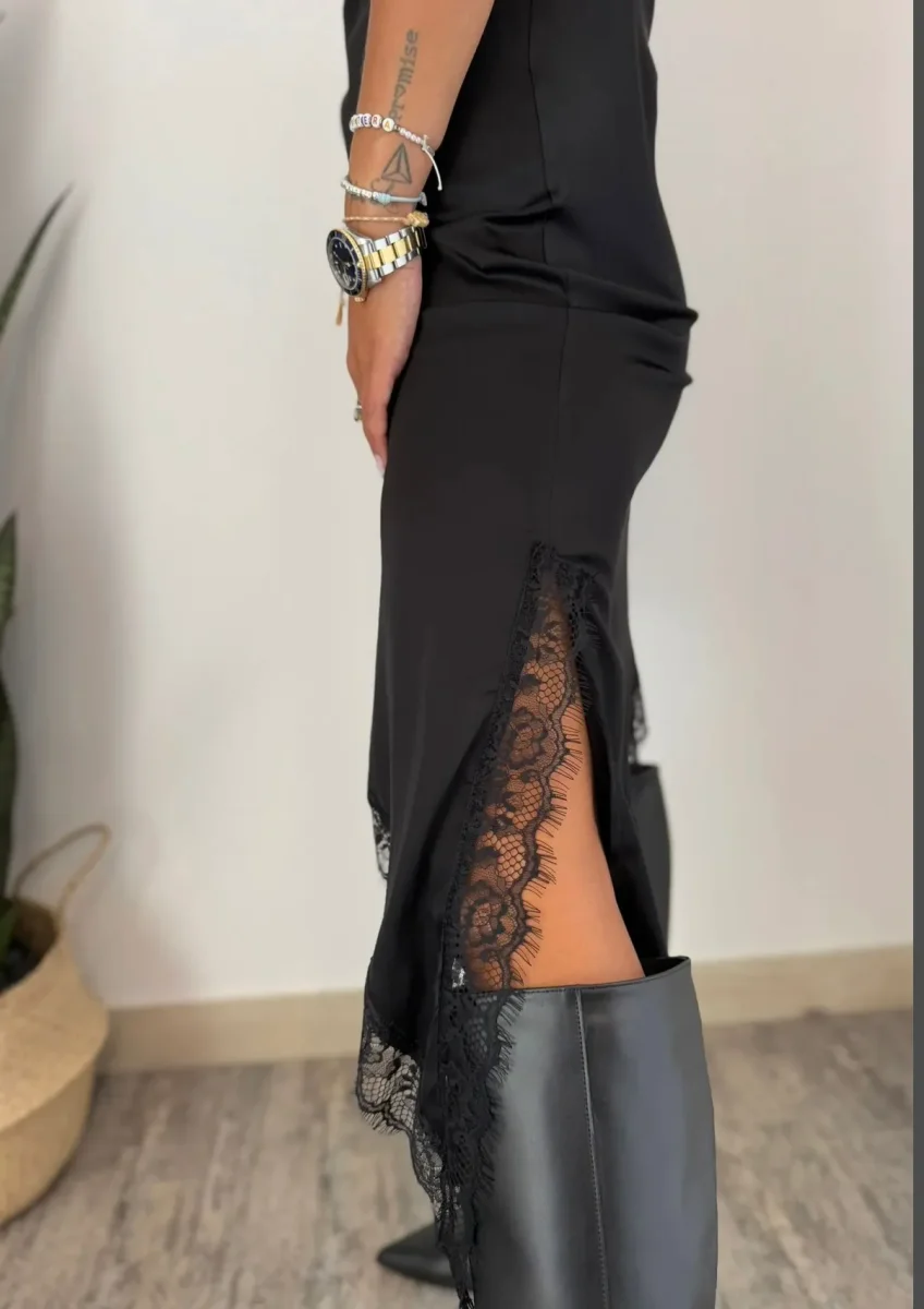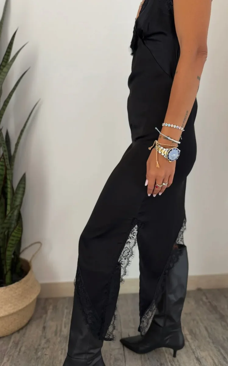 elasticizzato , spalline regolabili spacco laterale con pizzo