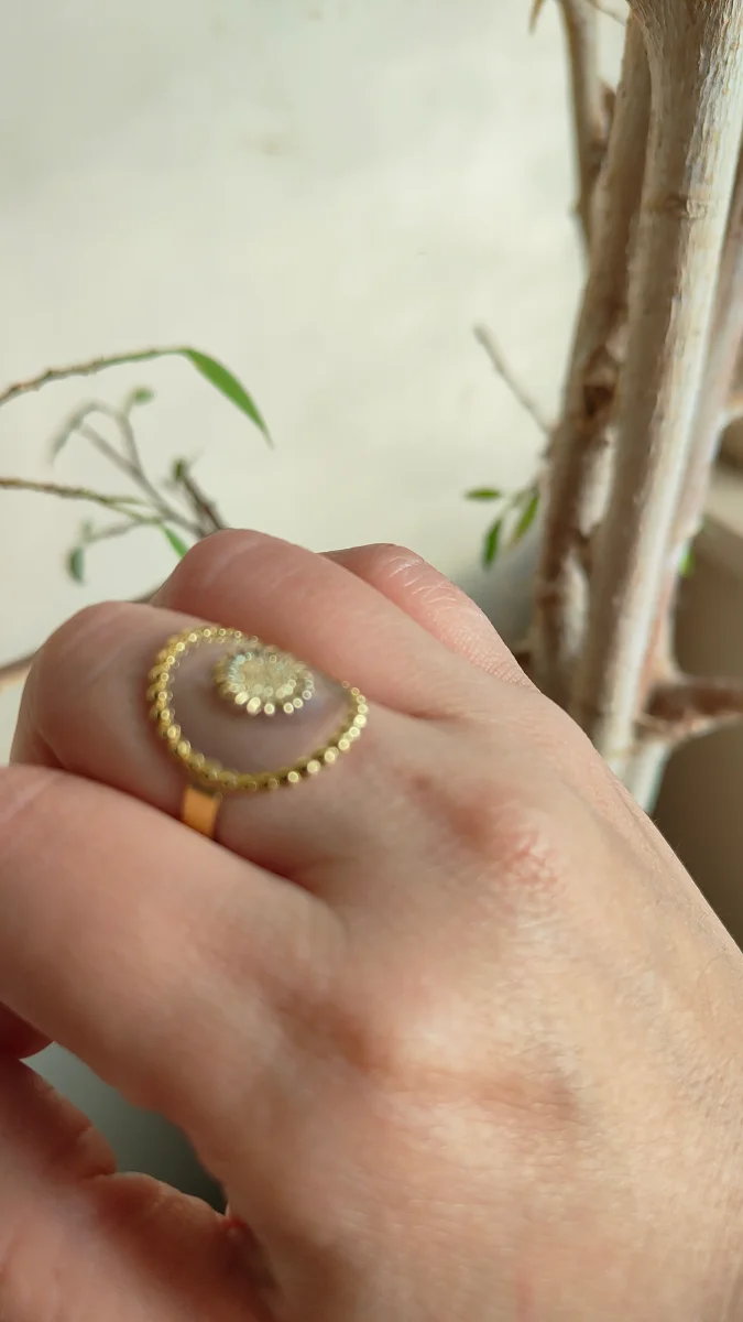 Il contrasto tra la struttura dorata e l’elemento centrale rende questo anello un accessorio originale ma facile da abbinare. Perfetto da indossare ogni giorno per aggiungere un tocco di luce al look oppure abbinato ad altri anelli per uno stile più ricercato.