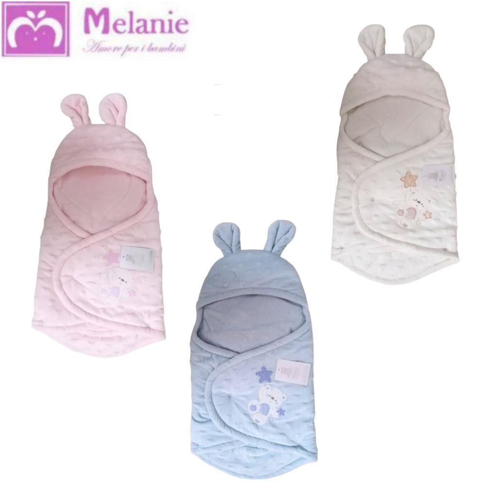 Baby sacco ovetto in morbidissimo coral, firmato Melanie. Disponibile in tre varianti di colore.