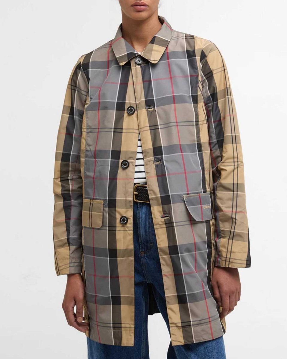 La giacca impermeabile reversibile Babbity di Barbour รจ realizzata in tessuto impermeabile ma traspirante ed รจ caratterizzata da una struttura reversibile per offrire due look in uno. Dotato di una chiusura con bottoni e di un colletto basso elegante e senza tempo, questo modello presenta un esterno in tinta unita e lโinconfondibile tartan Dress di Barbour rivisitato in chiave moderna sul rovescio.