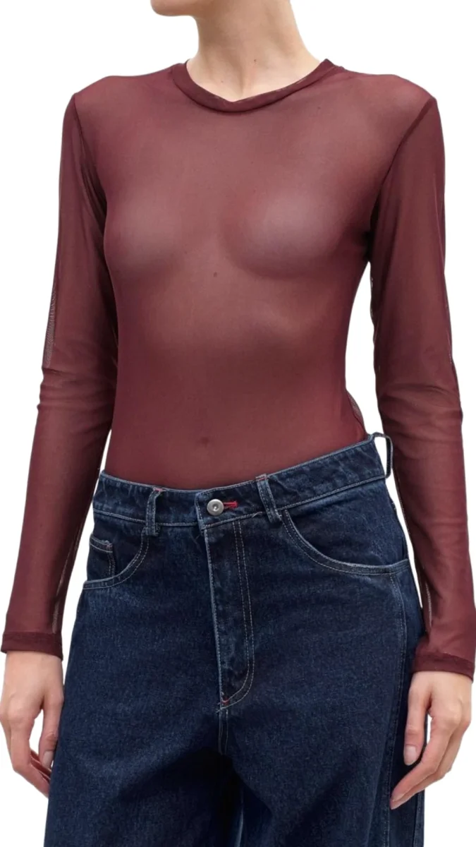 Body manica lunga in tulle trasparente, viscosa elasticizzata.