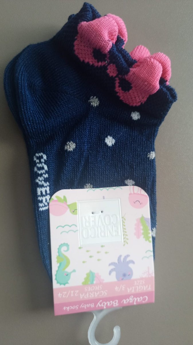 Enrico Coveri, calzini bimba in cotone con poise e fiocchetto. N.B. per chi acquista il pacchetto da 3 paia di calzini, a chiusura ordine, specificare nelle note, il colore dei calzini che desiderate.
