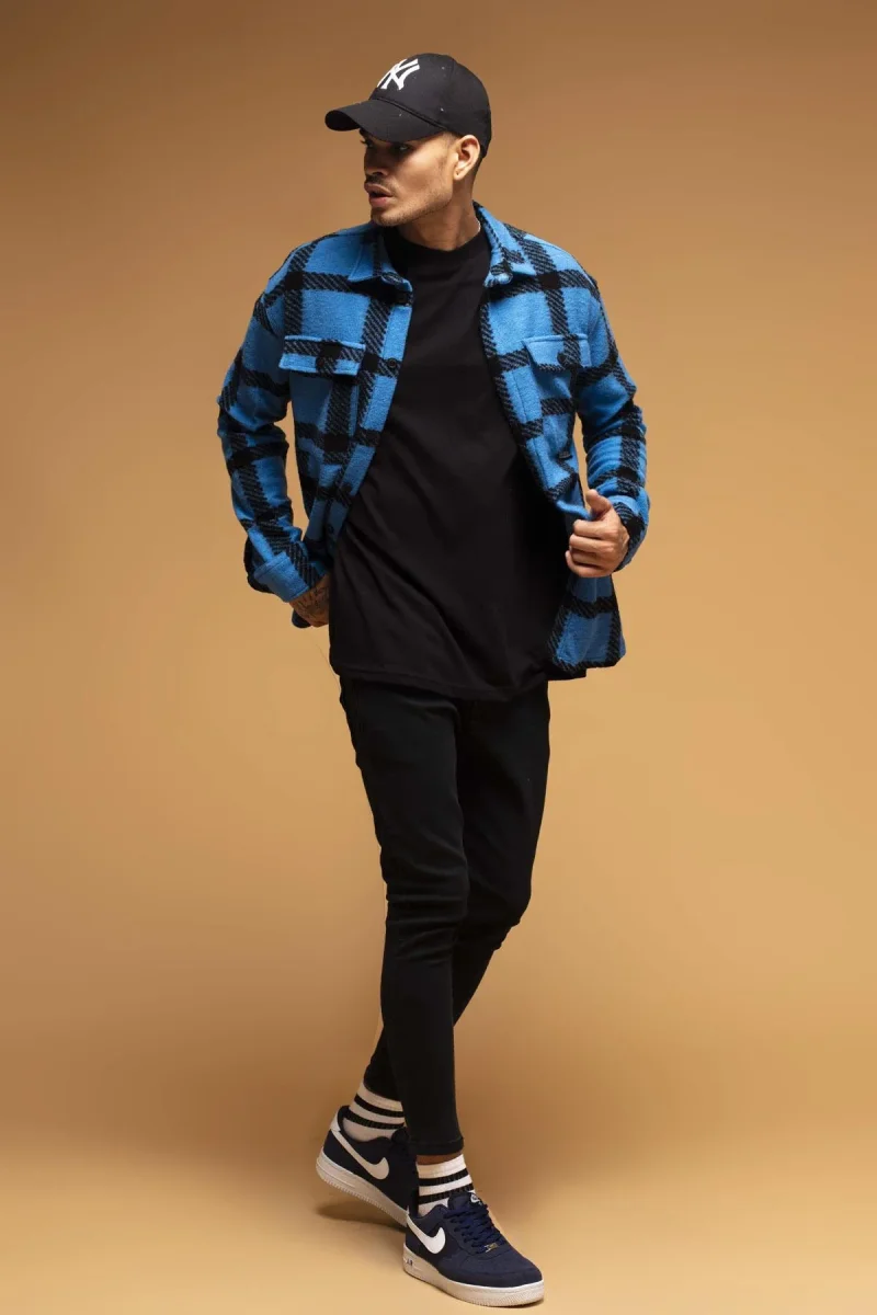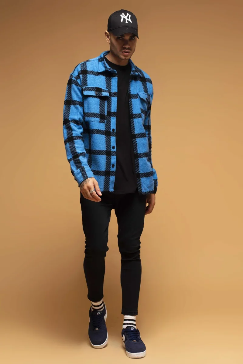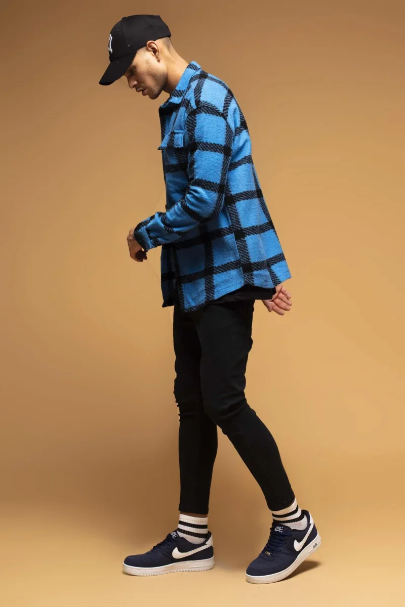 CAMICIA A QUADRI NERO E AZZURRO