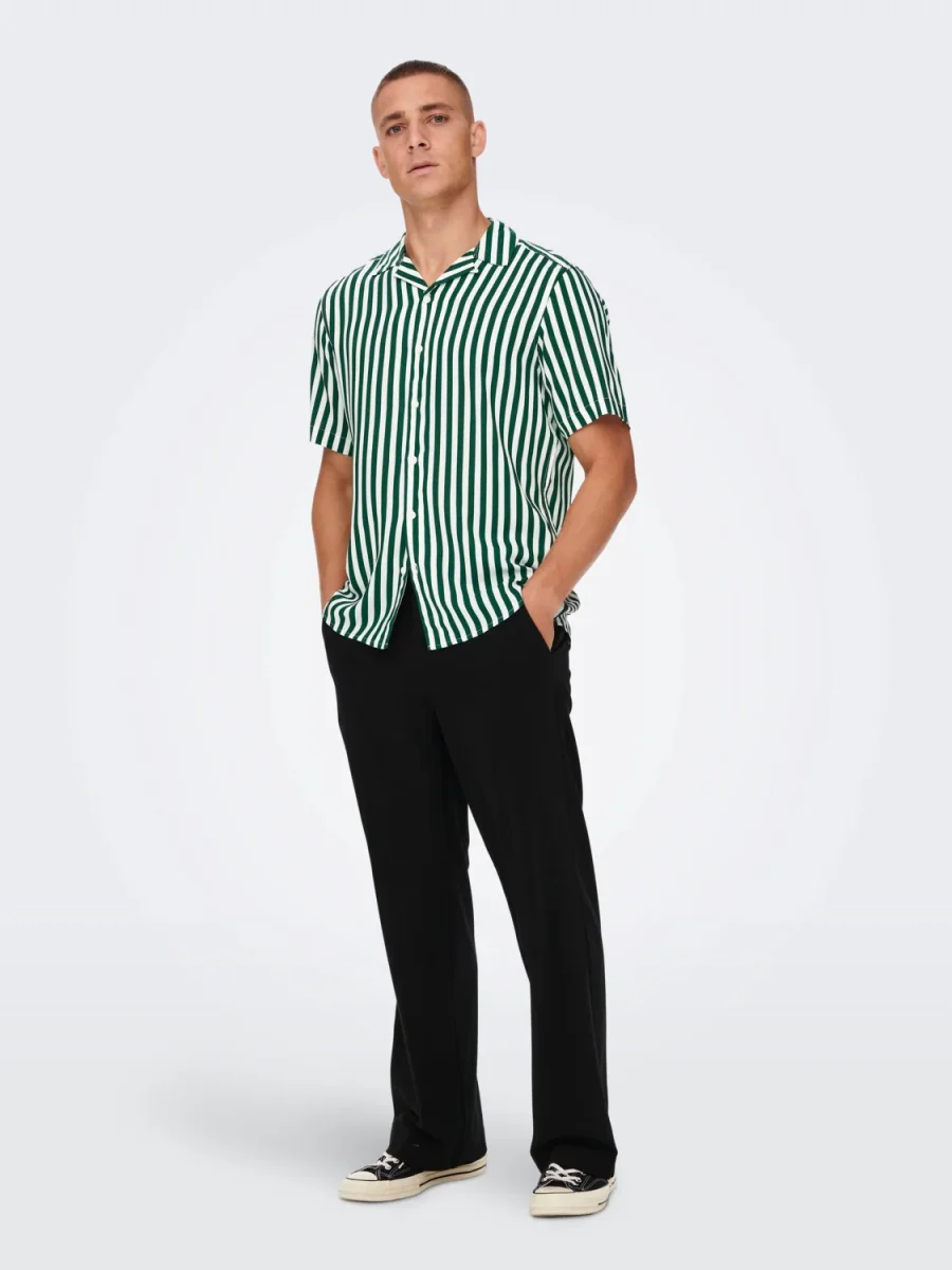 CAMICIA A RIGHE IN VISCOSA A MANICHE CORTE – Verde