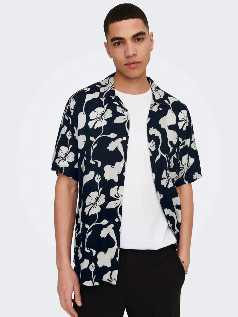 CAMICIA FLOREALE MANICHE CORTE – Dark Navy