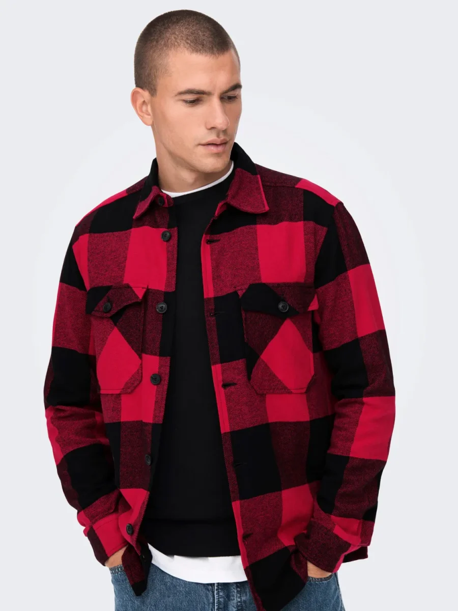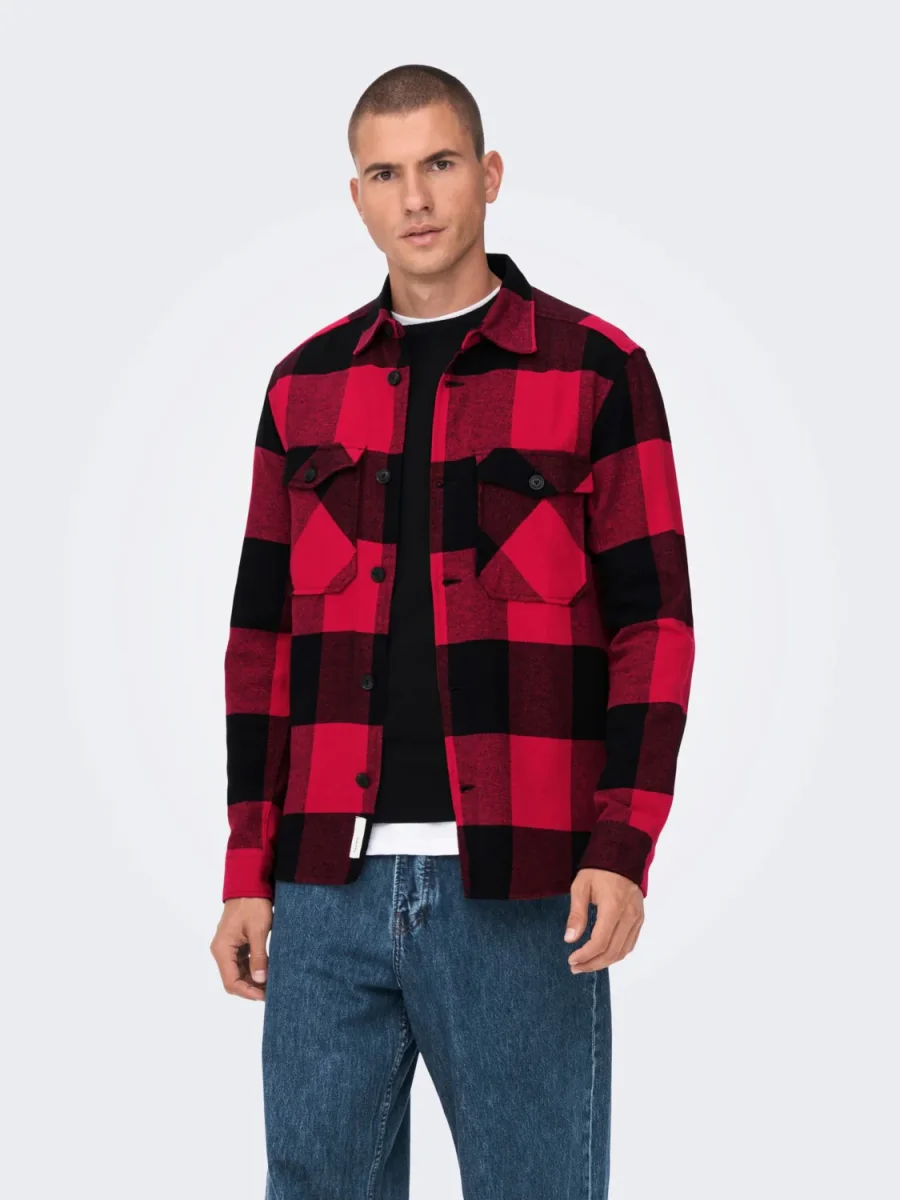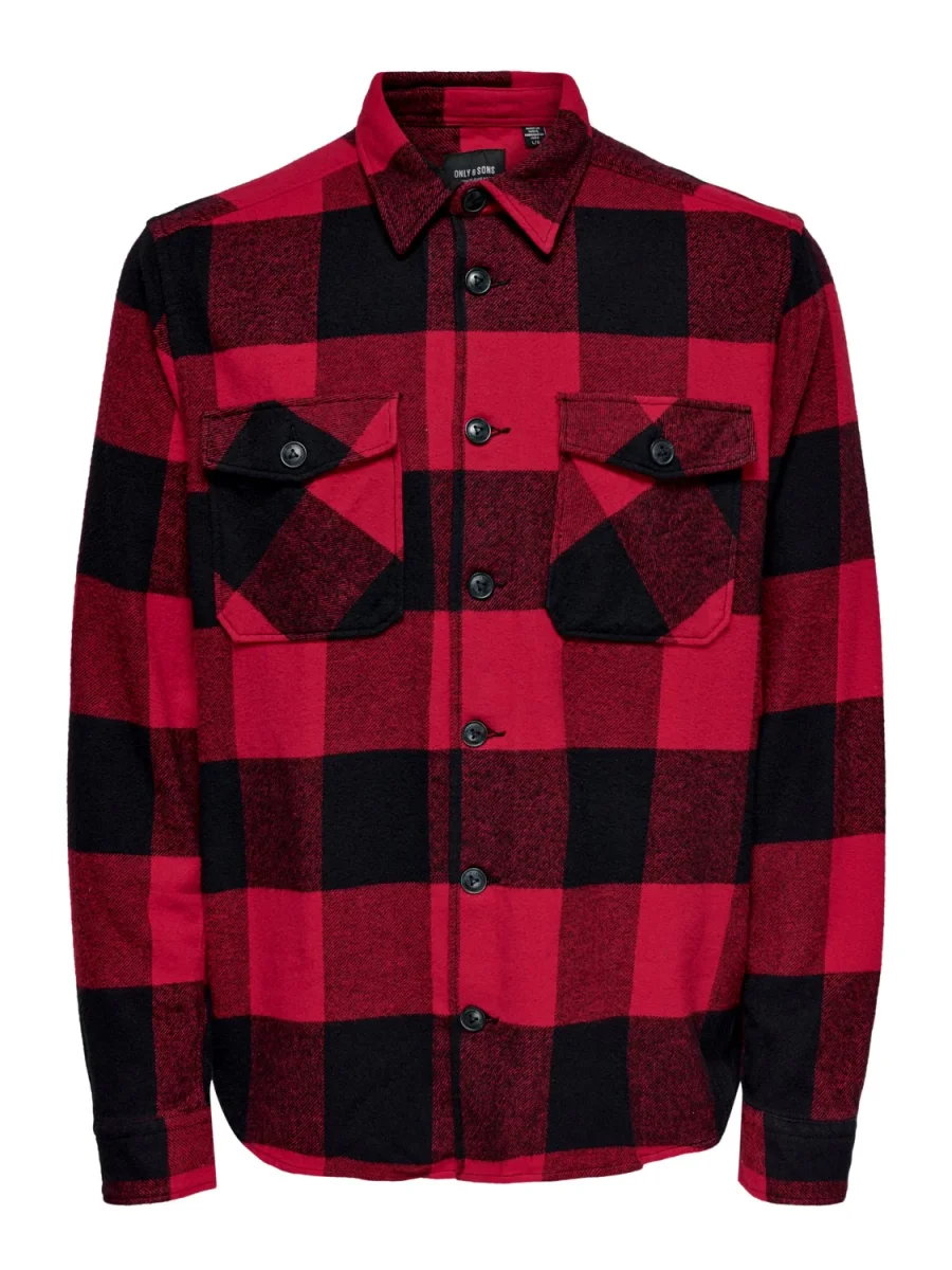 CAMICIA IN FLANELLA A QUADRI CON TASCHE – col. rosso e nero
