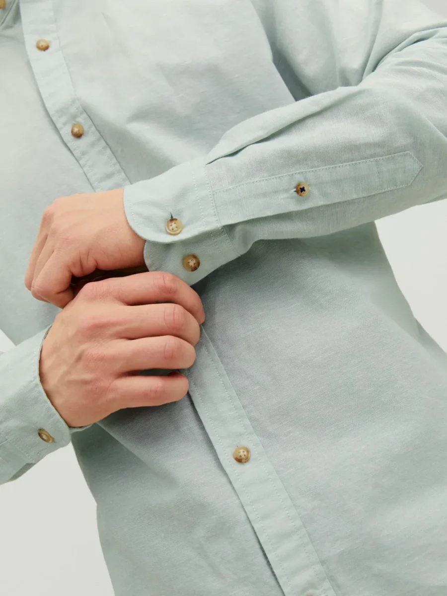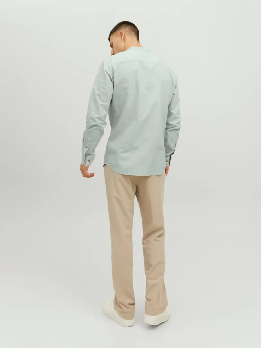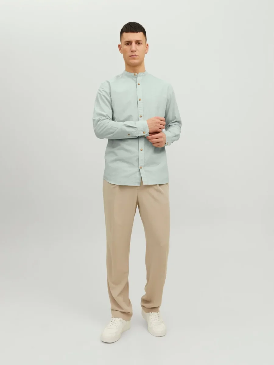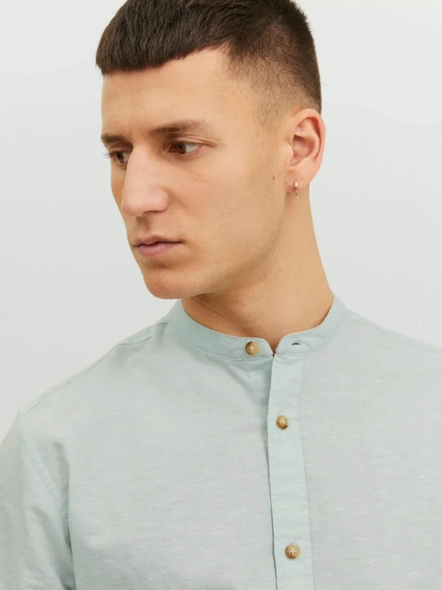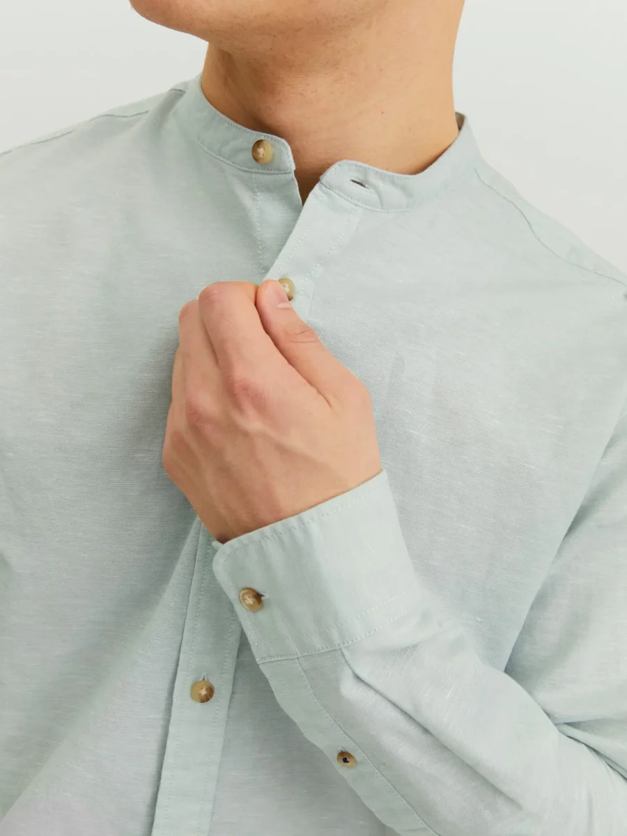 CAMICIA IN MISTO LINO CON COLLO COREANA – col. Granite green