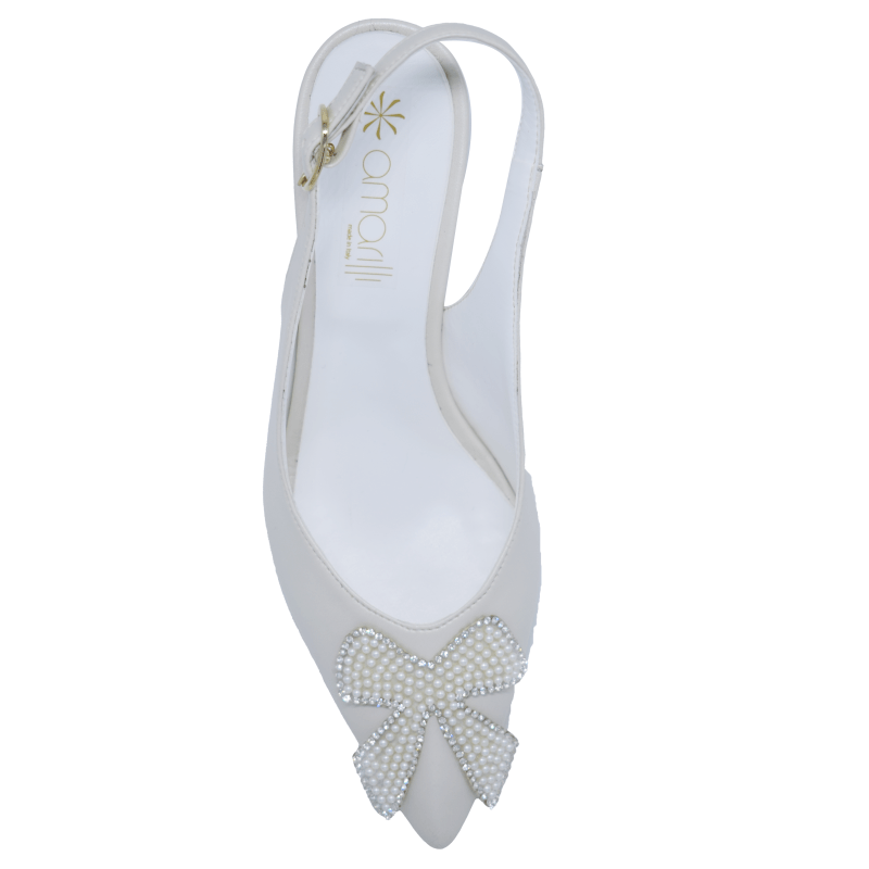 Scarpe da Sposa in pelle nappa e fiocco di perline e strass, con tacco alto 8 cm, chiuse, in pelle nappa Bianco o Perlato, fatte in Italia. Prodotte al momento dell’ordine e affidate al corriere in 7 giorni lavorativi (approfondisci). Come scegliere la misura