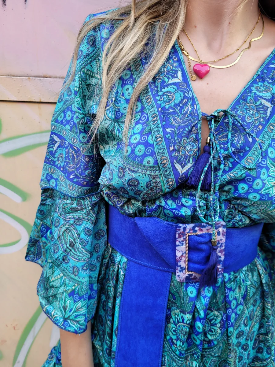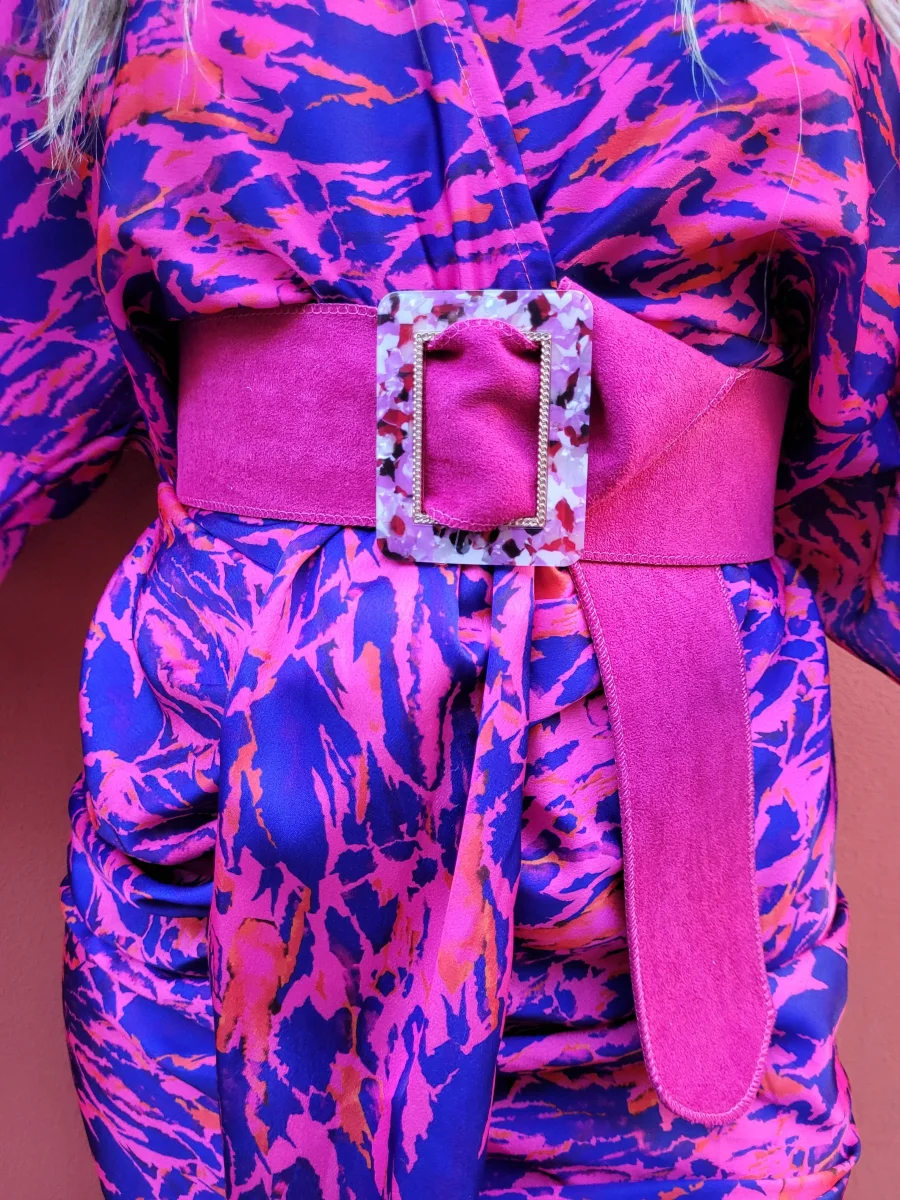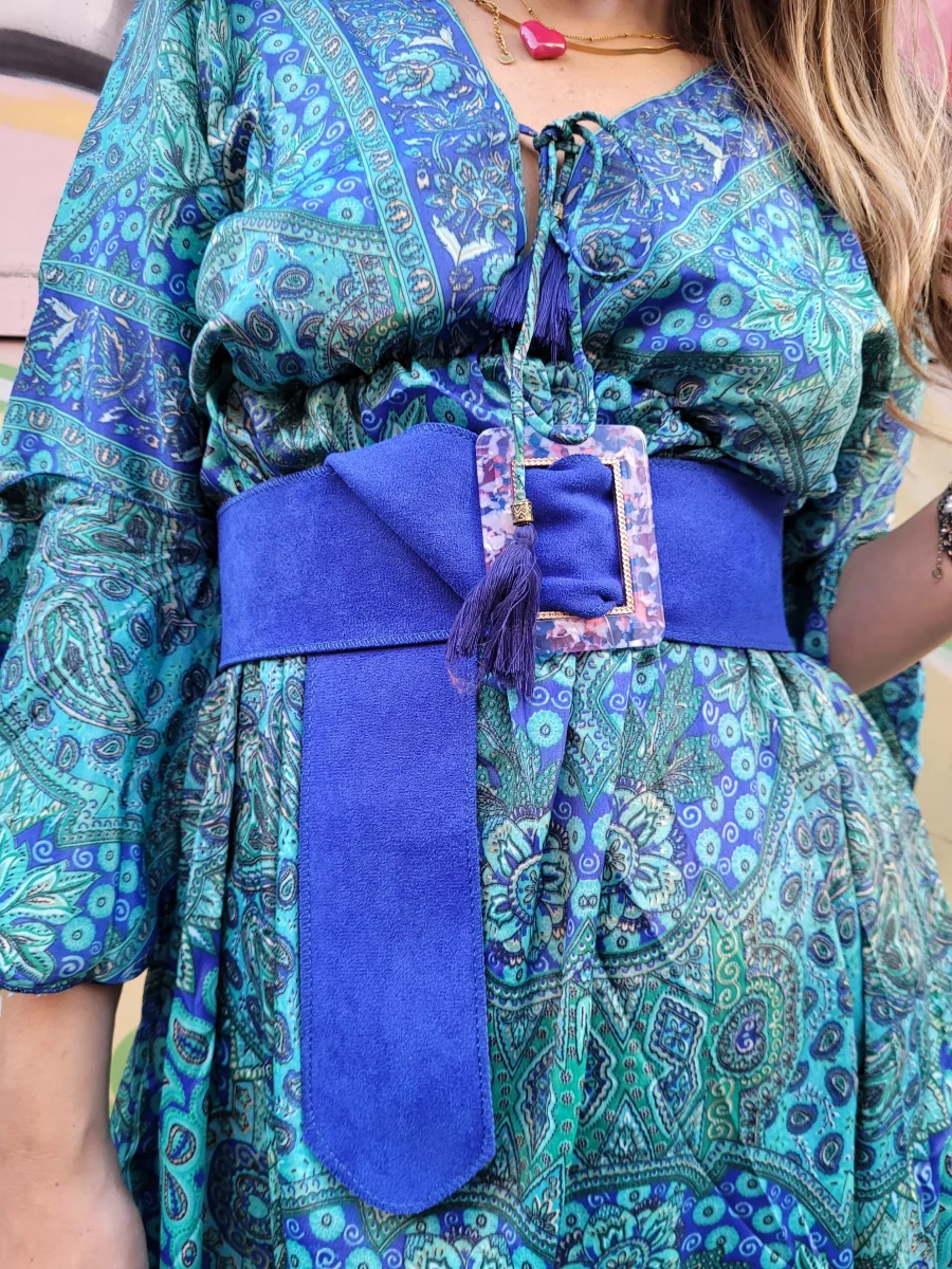 cintura in camoscio con placchetta in madreperla