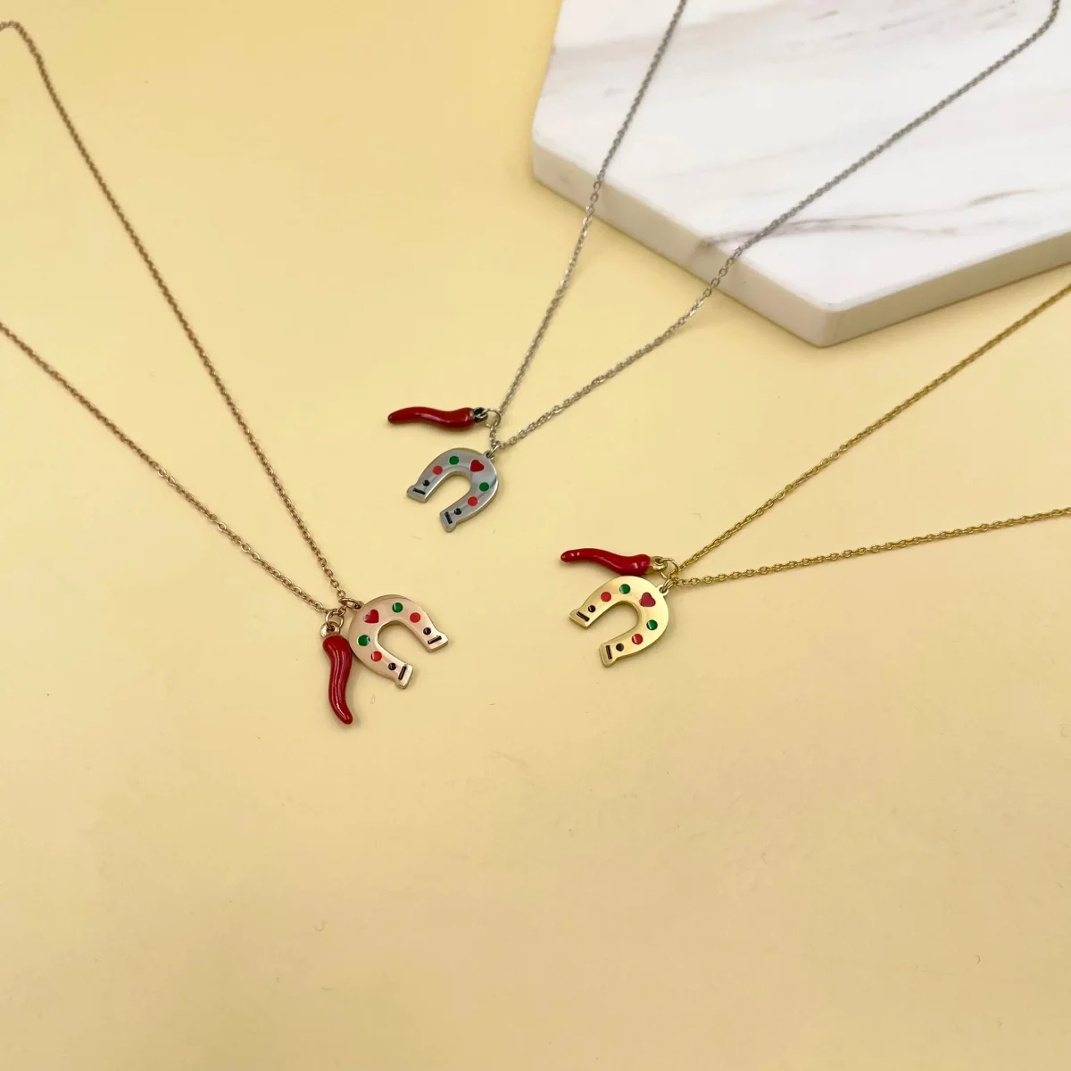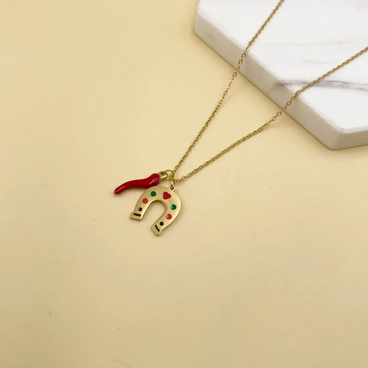 Collana con corno e ferro da cavallo