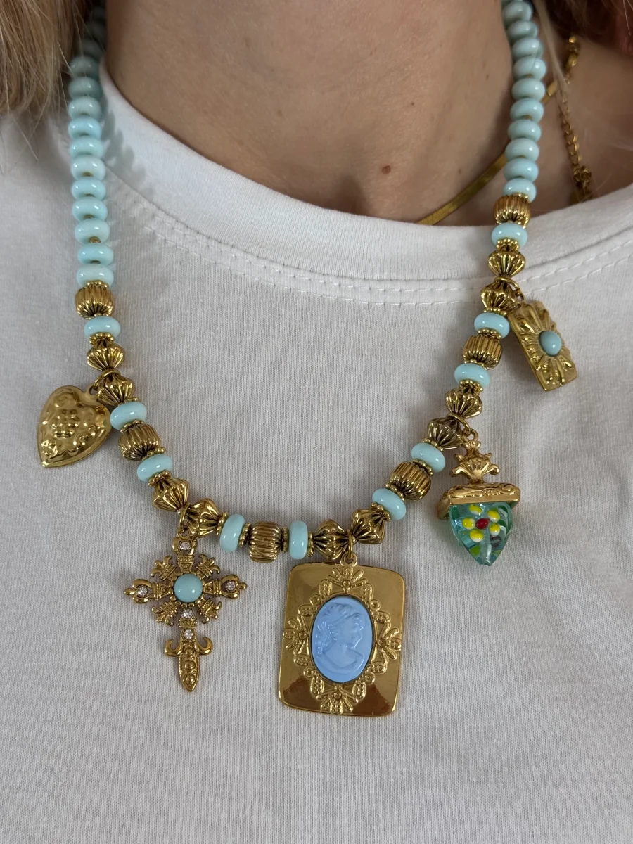 Collana acciaio inox inossidabile, con perline e charme pendenti