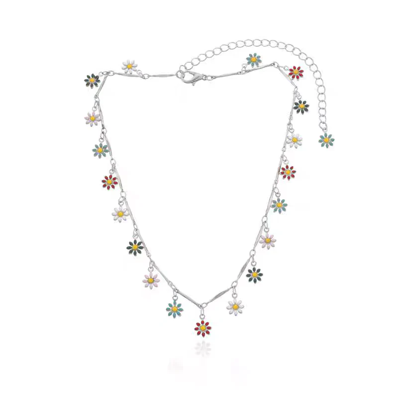 Collana con pendenti di margherite colorare In acciaio inossidabile