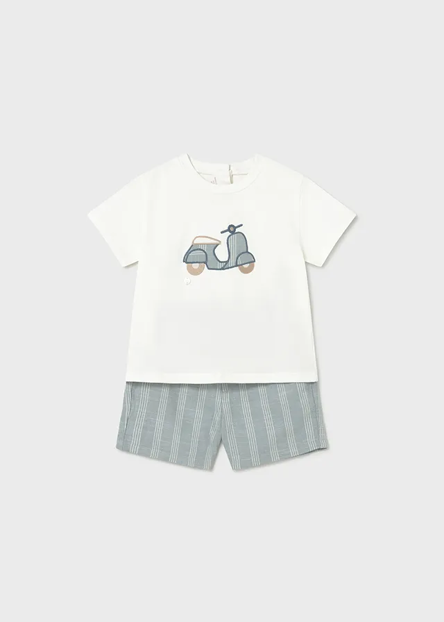 Completo pantaloncino e maglietta in lino neonato mayoral art. 26-01227-097