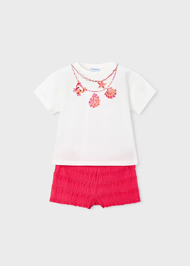Completo shorts volant e maglietta stampata bambina mayoral art. 26-03231-075