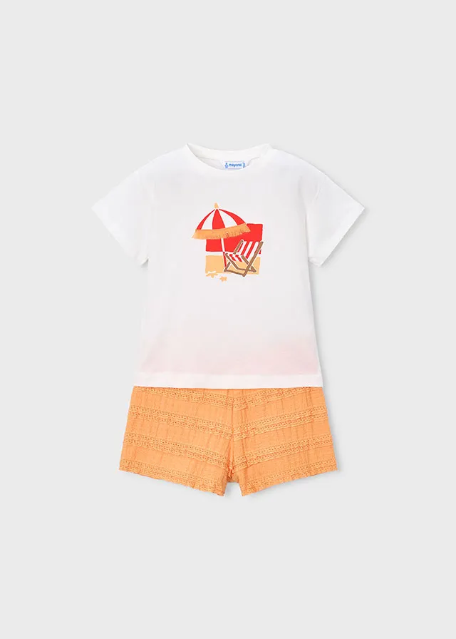 Completo shorts volant e maglietta stampata bambina mayoral art. 26-03231-077