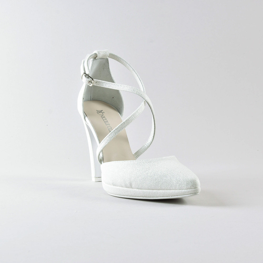 Niki Corti: Scarpe da sposa artigianali fatte a mano 100% Made in Italy. Scarpe in glitter avorio, comode ed eleganti. Scarpa realizzabile su ordinazione. Anche in altri Materiali. Questo articolo verrร prodotto in 20/40 giorni lavorativi.