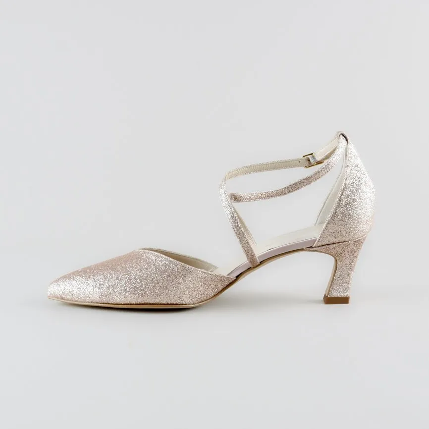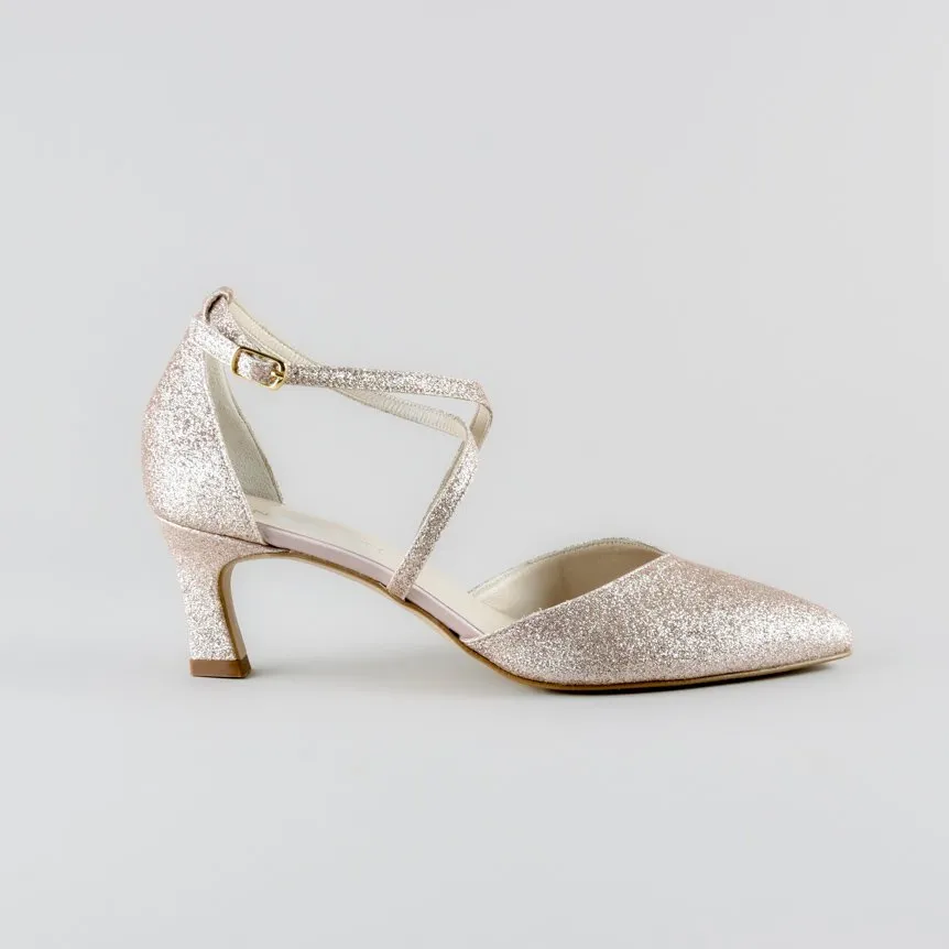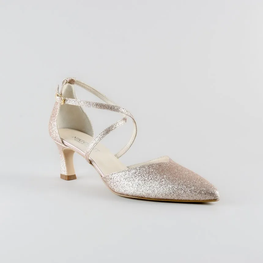 La Cross Strap Penny รจ la scarpa da cerimonia pensata per chi desidera unire eleganza, praticitร e stile in un unico accessorio. Questo modello raffinato in glitter cipria rappresenta l’equilibrio perfetto tra sobrietร e brillantezza, ideale per accompagnare spose, invitate o madrine nei momenti piรน importanti della vita. Leggera, luminosa e incredibilmente comoda, รจ una calzatura destinata a farsi ricordare.