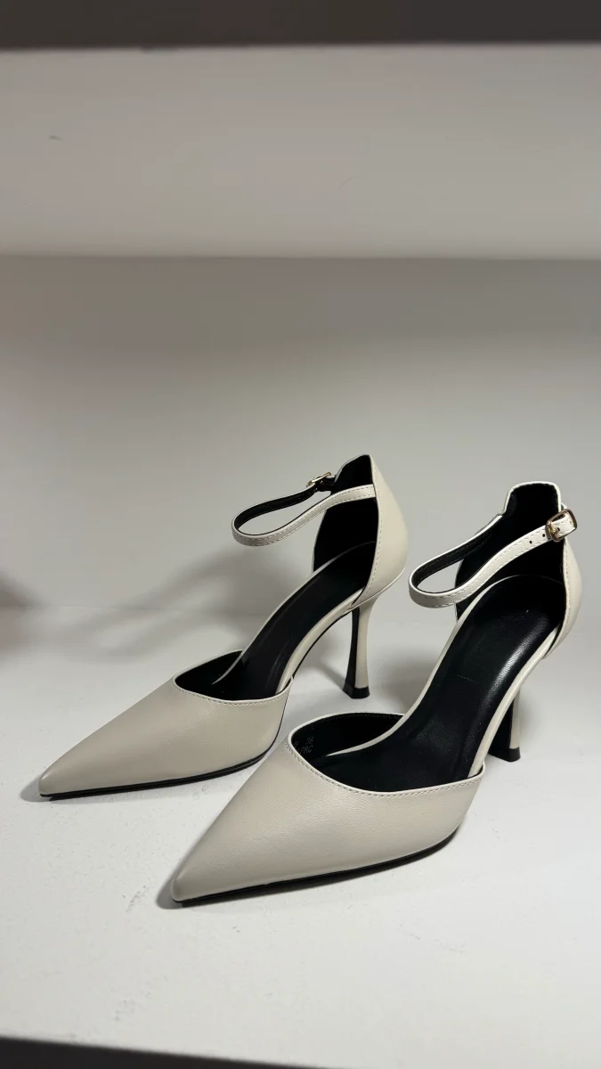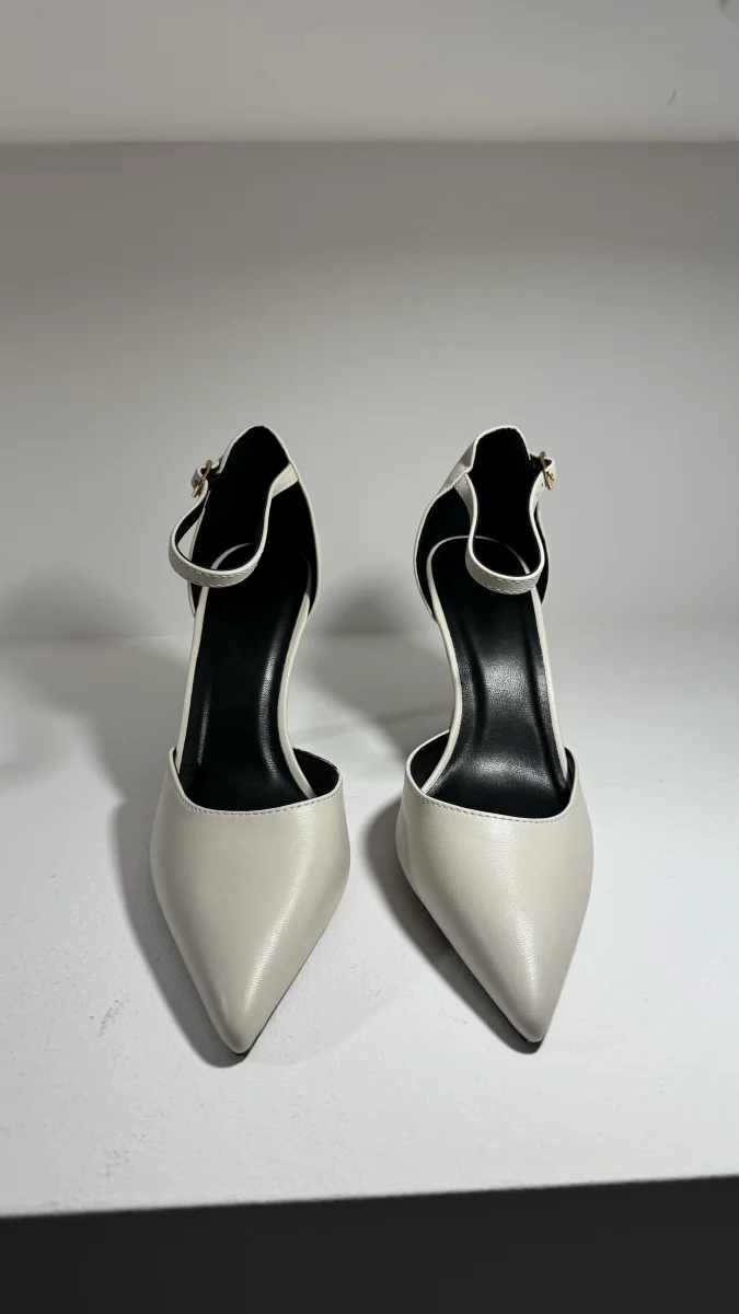 Décolleté con laccetto alla caviglia regolabile. Tacco comodo altezza 7,5cm. Ecopelle vegana.