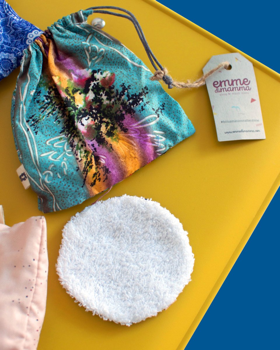 Noi realizziamo e offriamo una scelta diversa e ecosostenibile: dischetti strucca viso lavabili e riutilizzabili all’infinito. Lo strato interno รจ realizzato in morbida spugna assorbente, mentre quello esterno รจ realizzato in cotone 100% proveniente da preziose stoffe dipinte a mano o di vintage selezionato.