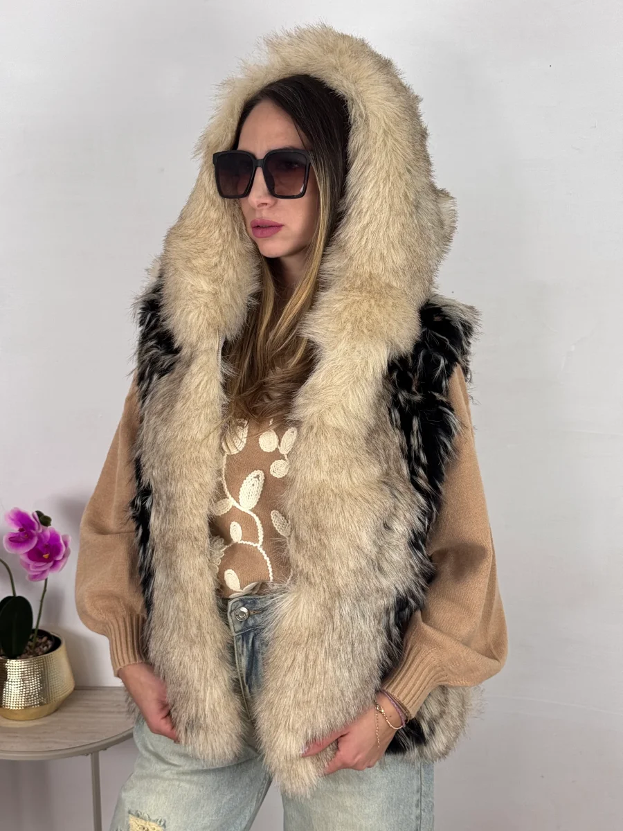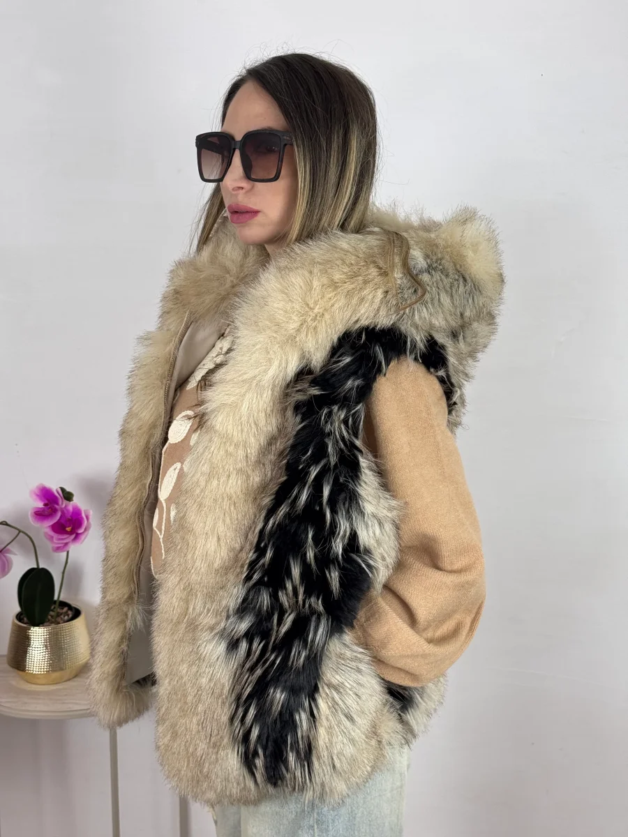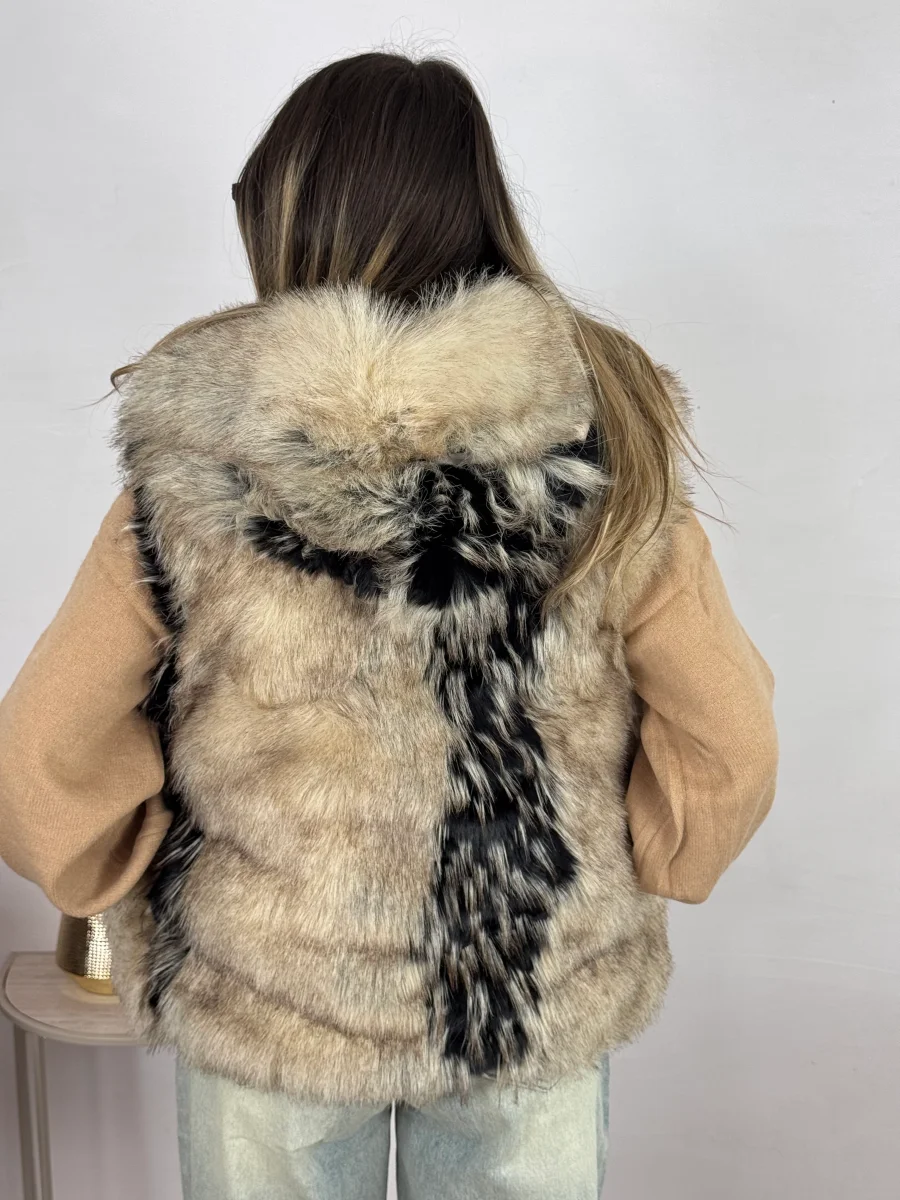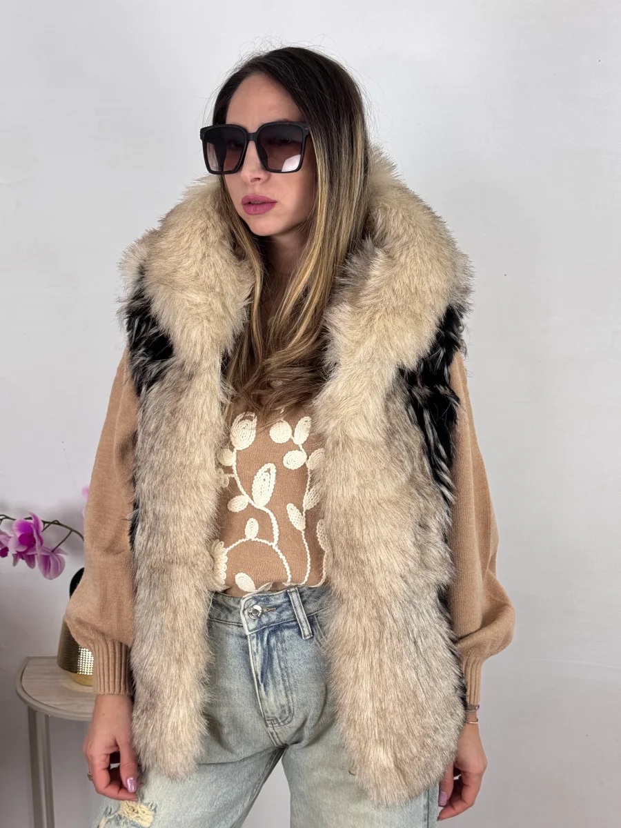 ecopelliccia morbidissima , foderata internamente inserti in ecopelle vestibilitร regolare , la modella indossa tg S/M TOP QUALITY