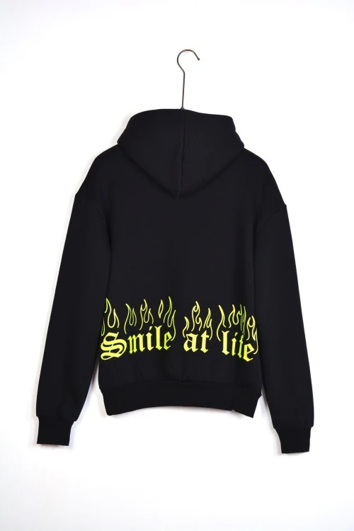 FELPA CON CAPPUCCIO “SMILE AT LIFE ” – Col. Nero