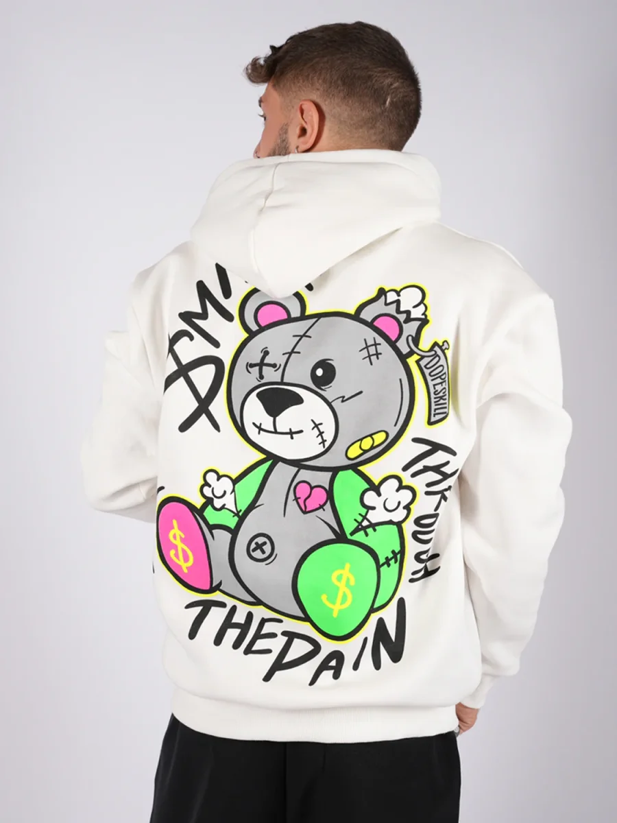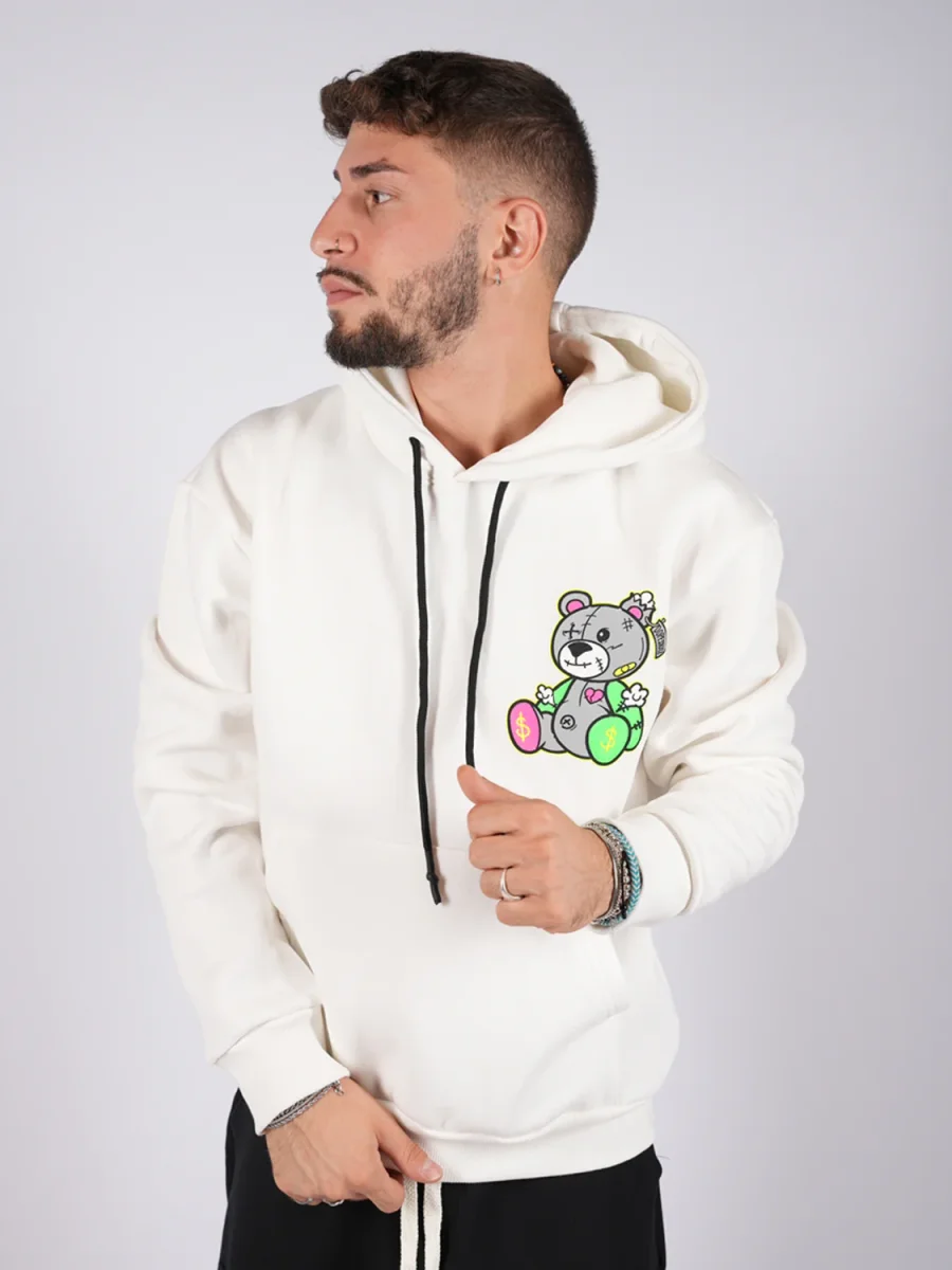 FELPA CON CAPPUCCIO “SMILE THE PAIN” – Col. Bianco