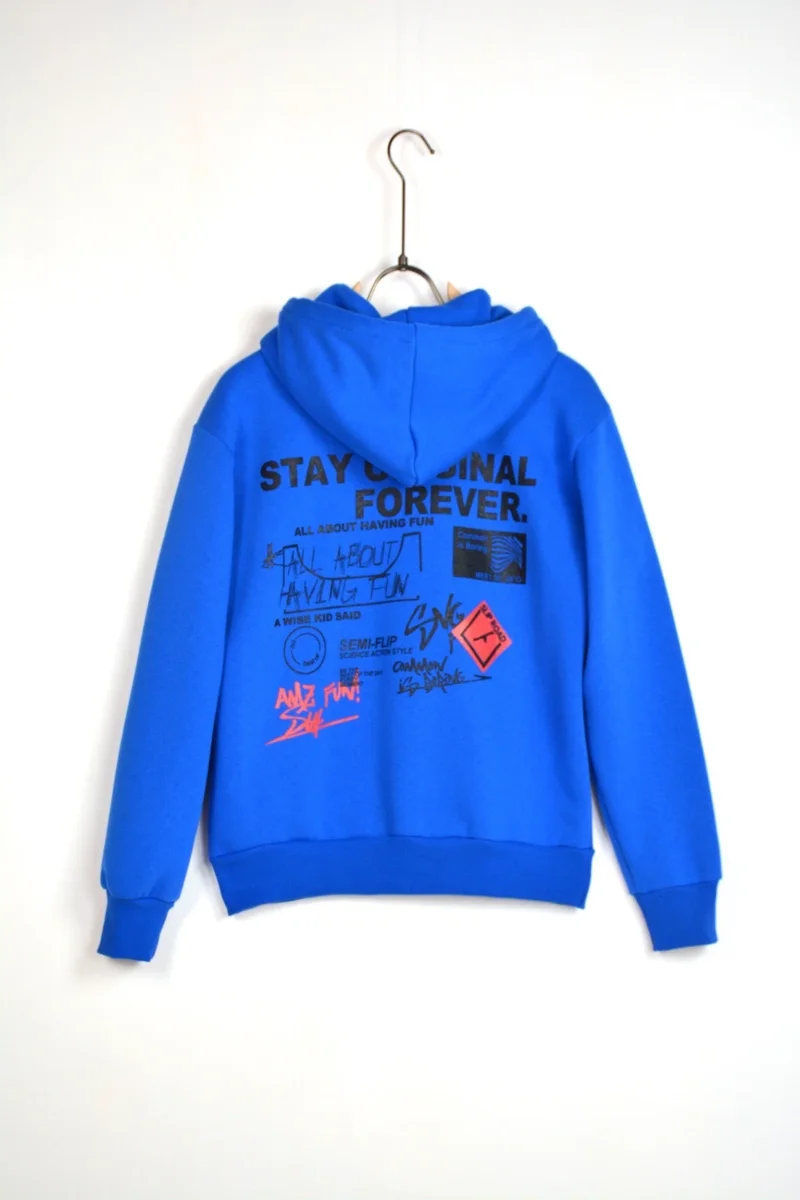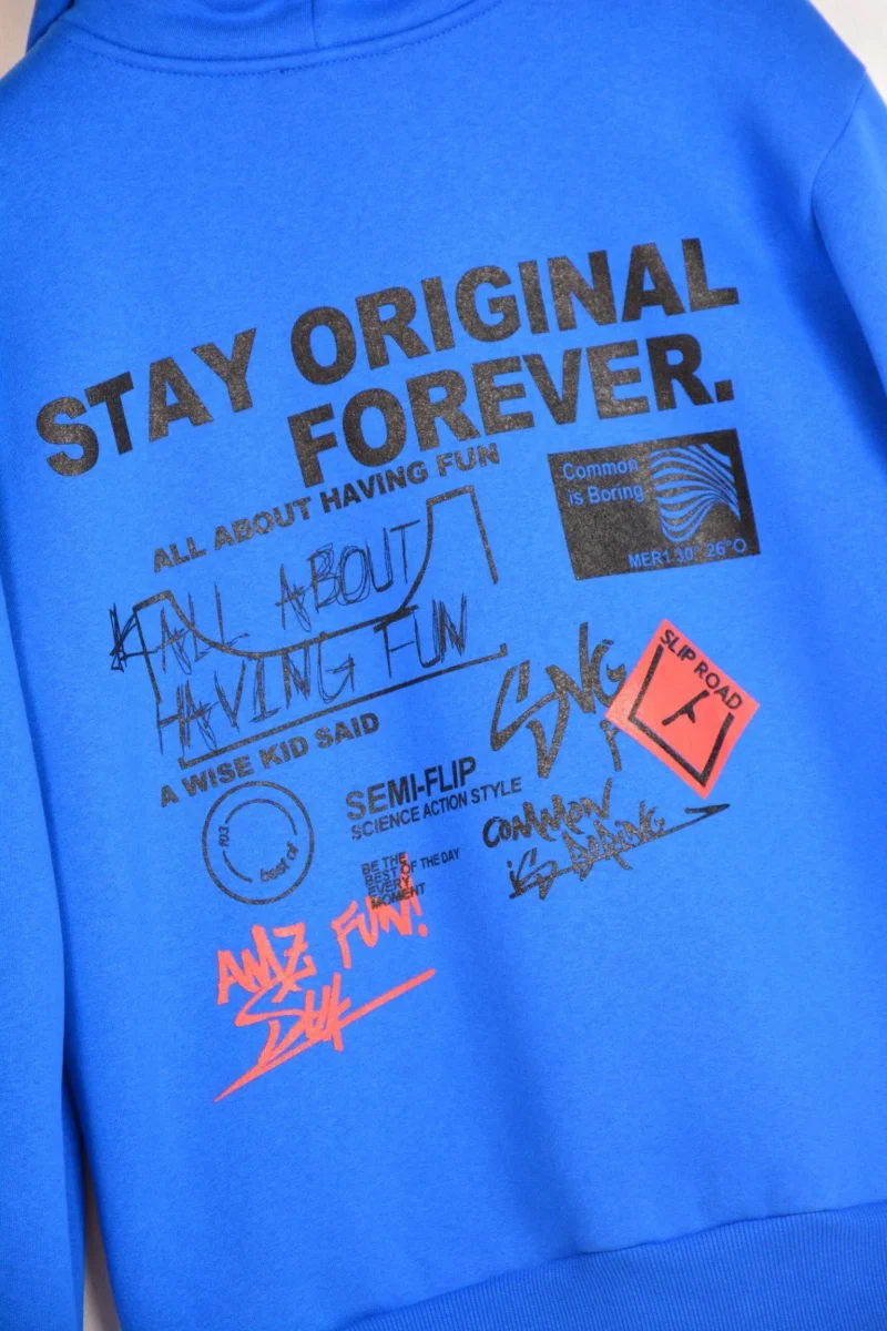 FELPA CON CAPPUCCIO “STAY ORIGINAL FOREVER” – Blu royal