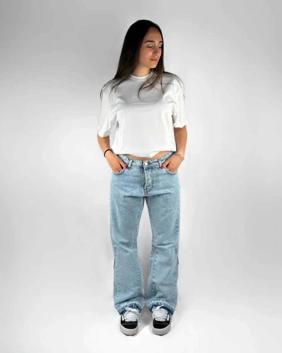-100% fixed cotton -Flared fit -5 pockest -Lather tag with logo -Made in Italy Male model: 173cm-71kg, size 46
