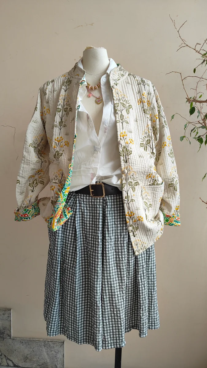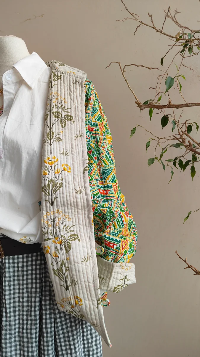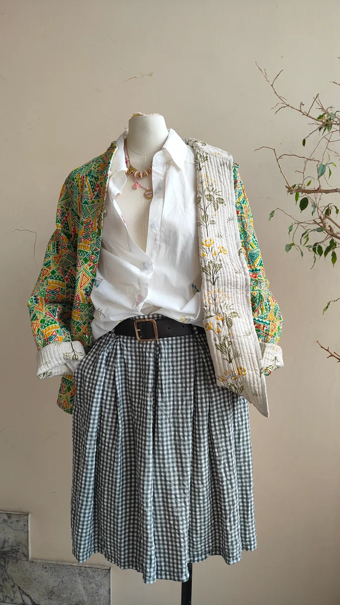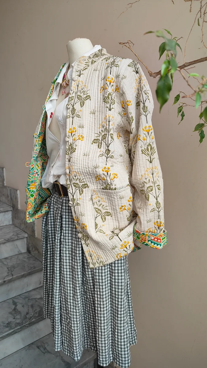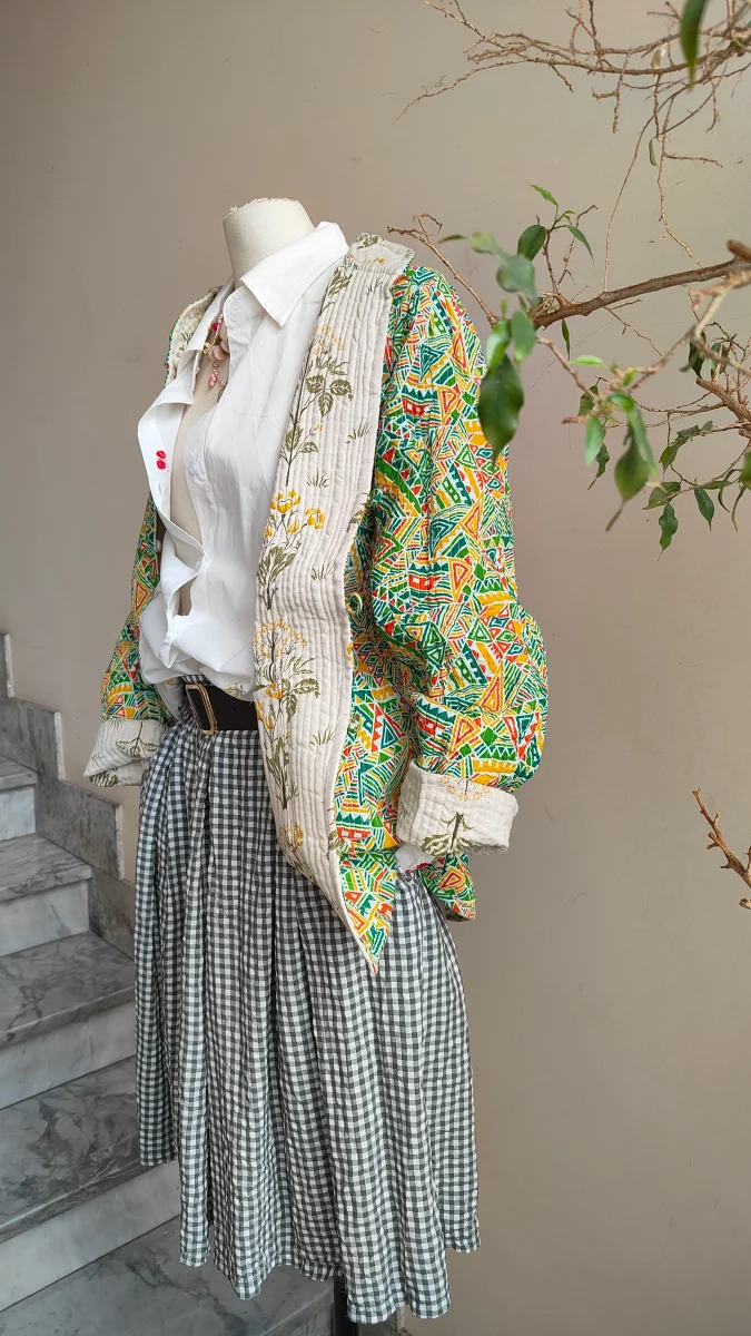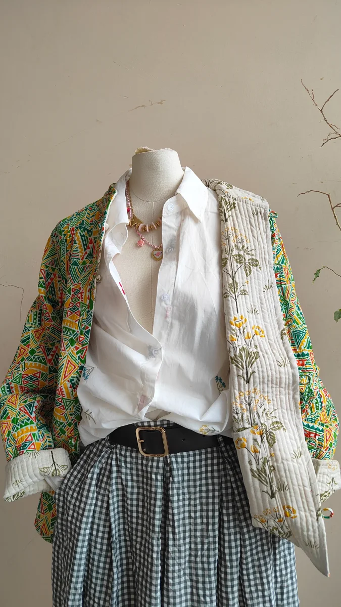 Un capo speciale, pensato per accompagnarti con stile e versatilità . La Giacca Duale è realizzata interamente in cotone e presenta due fantasie differenti, da indossare in base all’umore o all’occasione: un lato più deciso, l’altro più delicato. È come avere due giacche in una sola.