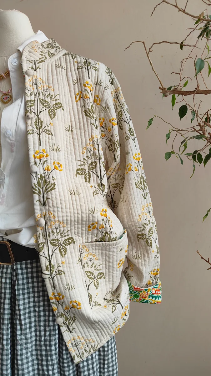 La linea morbida e il tessuto leggermente trapuntato la rendono perfetta per la mezza stagione. Indossarla aperta su un abito o stringi in vita con una cintura per un look più definito.