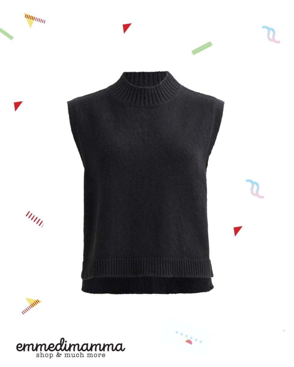 Gilet in maglia a girocollo, realizzato in morbido e compatto filato bouclé. Design essenziale, linea dritta e leggermente squadrata, ideale per sovrapposizioni su camicie o maglie a manica lunga. Spacchetti laterali per una migliore vestibilità e comfort nei movimenti. Il gilet è il capo perfetto per “aggiungere uno strato” senza appesantire.