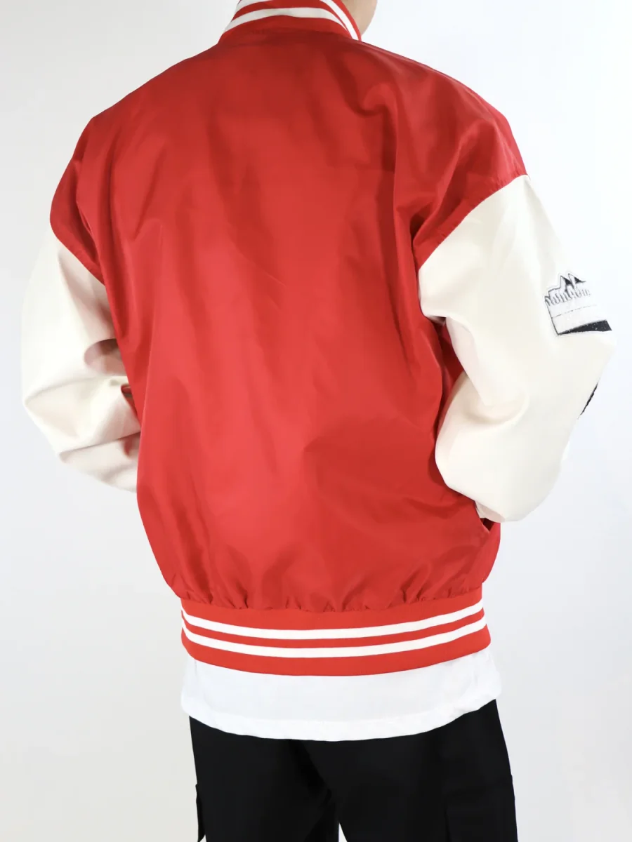 Giubbotto modello college con maniche bianche, scritte e patch ricamate. Il modello indossa la M, รจ alto 181 cm e pesa 82 kg. Vestibilita’: Regular Interno: Leggero Codice articolo: TG-3038