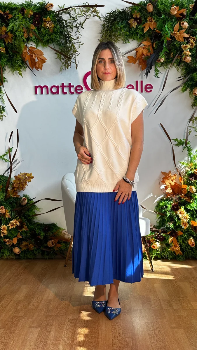 La gonna in maglia รจ elegante e alla moda, grazie alla sua forma a campana e alle costine che la rendono unica. Perfetta per ogni occasione, garantisce un look sofisticato e moderno, offre comfort e stile ineguagliabili. La modella indossa una taglia unica Veste da una taglia 42 fino ad una taglia 52 Composizione 50% […]