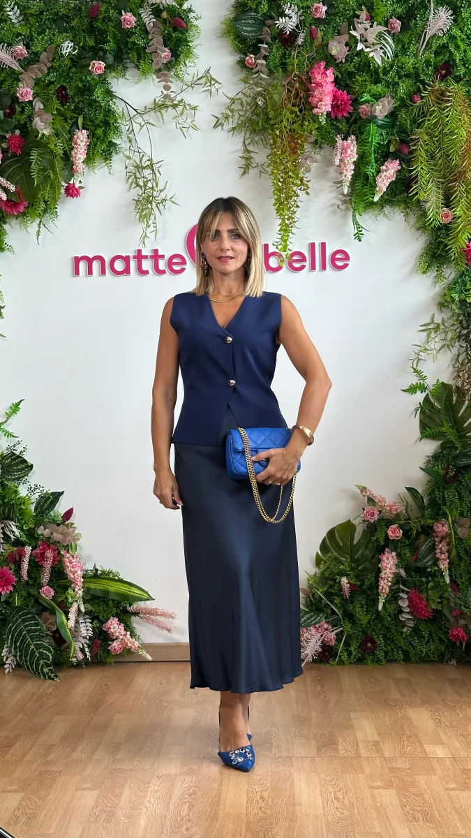 Questa gonna longuette blu navy, realizzata in morbida viscosa, avvolge con sensualitร senza rinunciare al comfort. La silhouette svasata si muove con eleganza, mentre l’elastico in vita garantisce una vestibilitร perfetta e audace, pronta a catturare gli sguardi con ogni tuo passo. La modella indossa la tg unica Veste dalla tg 40 alla tg 44/46 […]