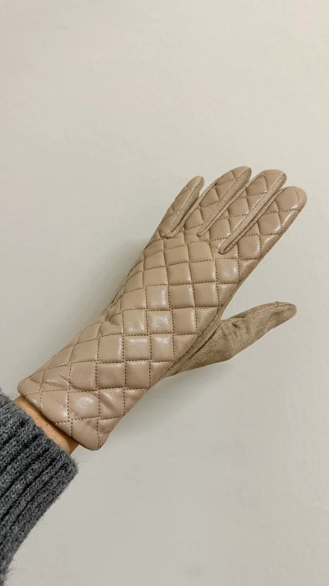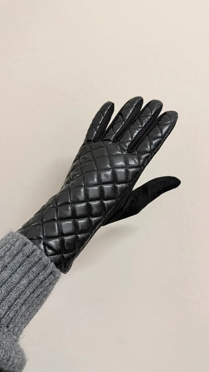 Guanti in ecopelle e ecocamoscio trapuntati. Caldi ed eleganti.