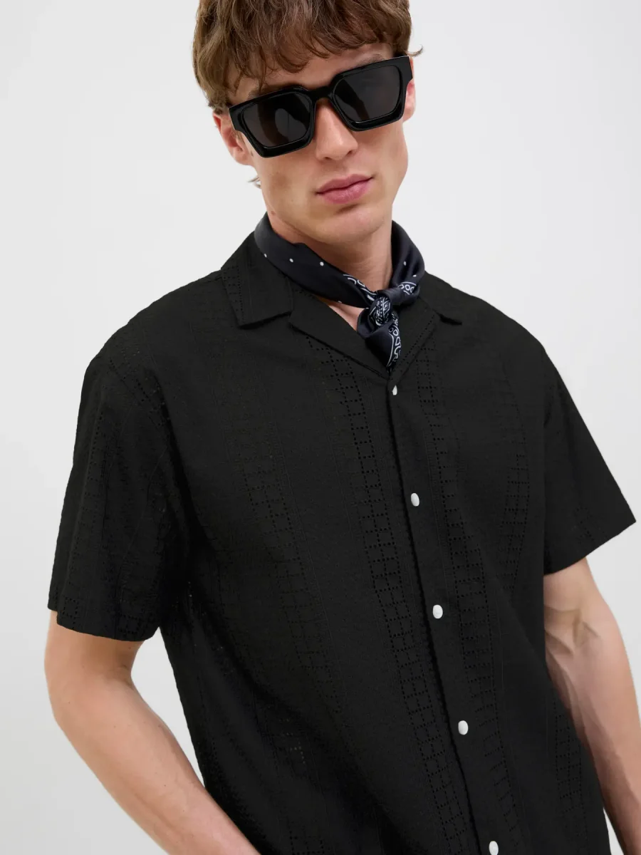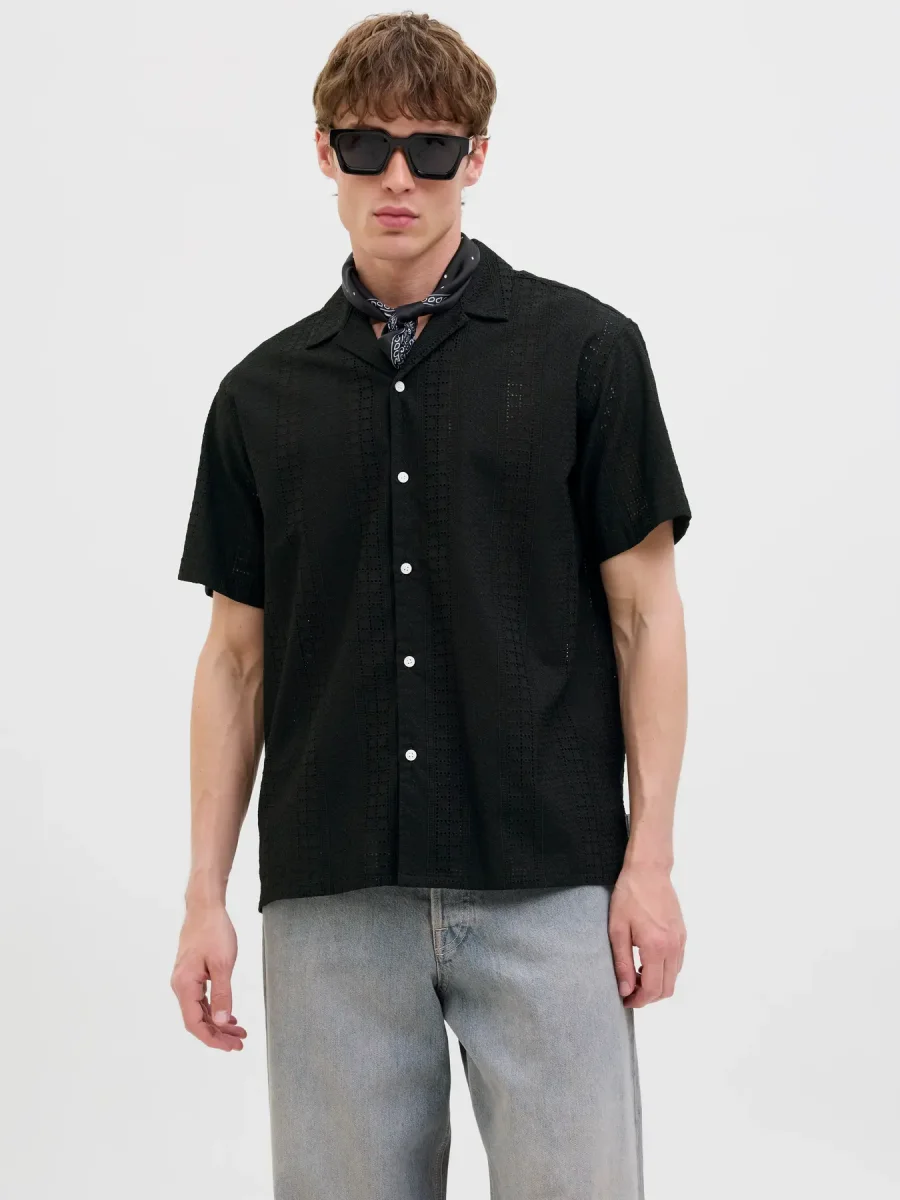 JACK & JONES CAMICIA JORSUMMER LUKE ANGLAISE RESORT – Col. nero