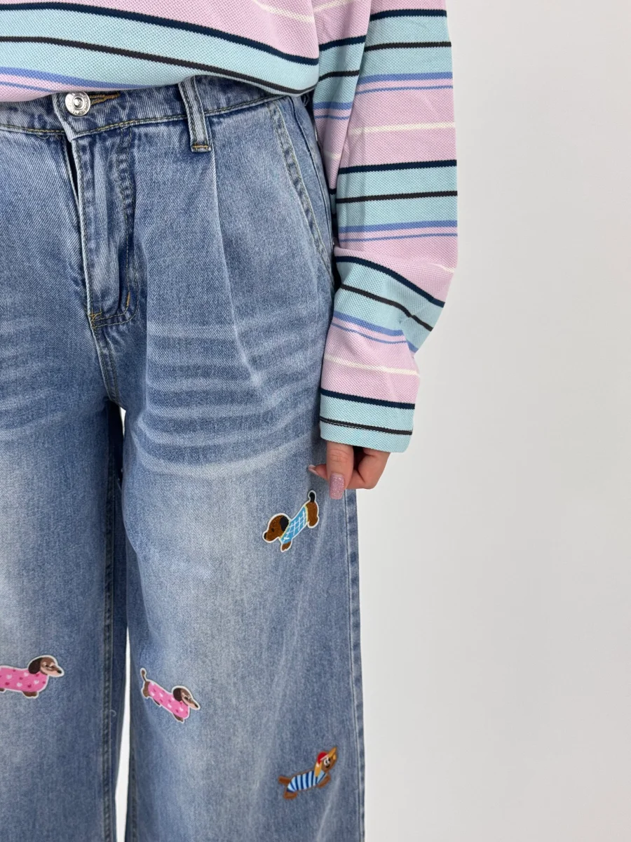 Jeans a palazzo con ricami in rilievo