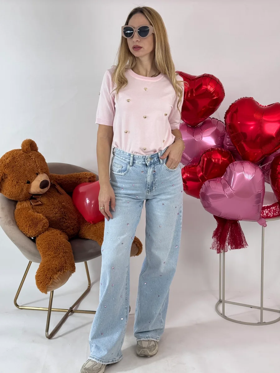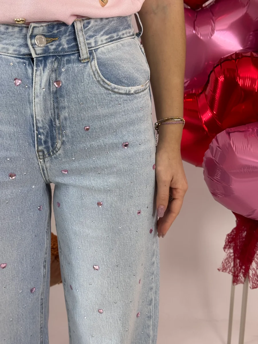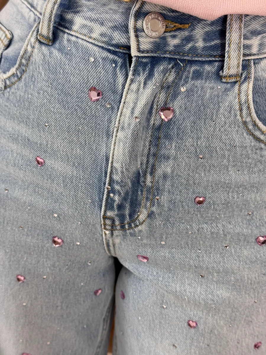 JEANS CUORI STRASS ROSA
