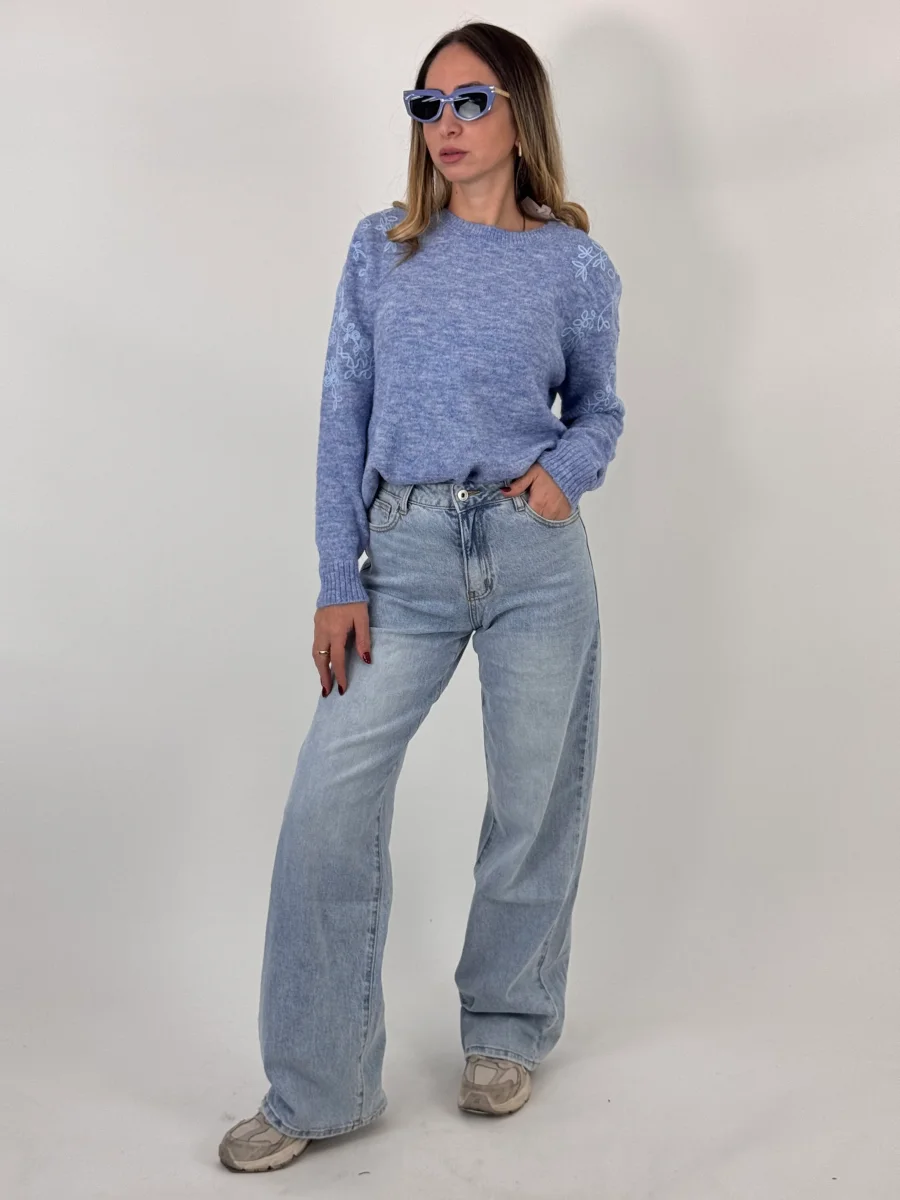 Jeans palazzo, tessuto elasticizzato, vestibilitร regolare, la modella รจ alta 1.65cm e indossa tg.S