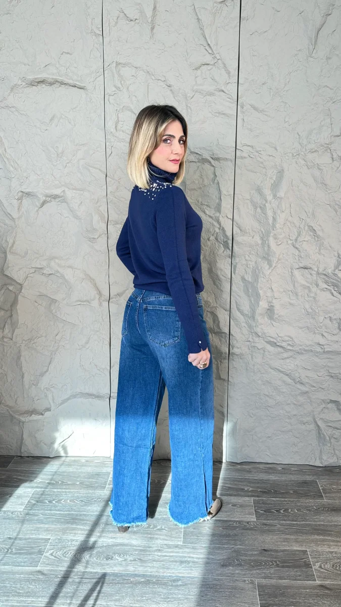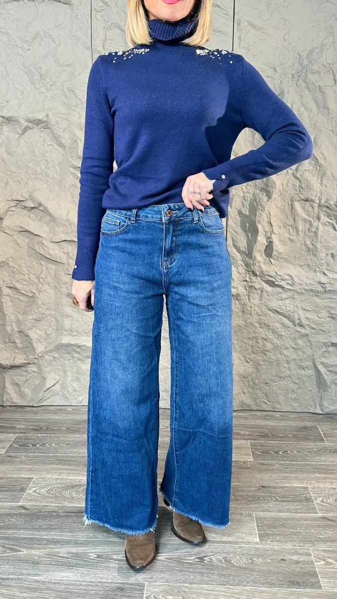 Jeans palazzo dal taglio ampio e confortevole, perfetti per chi ama uno stile rilassato e contemporaneo. L’orlo sfrangiato aggiunge un tocco di carattere e movimento, mentre la stoffa elasticizzata garantisce libertร di movimento durante tutta la giornata. Un capo versatile che si adatta facilmente a diversi look, dal casual al piรน ricercato. Indossali con fiducia e scopri quanto possono fare la differenza nel tuo guardaroba.