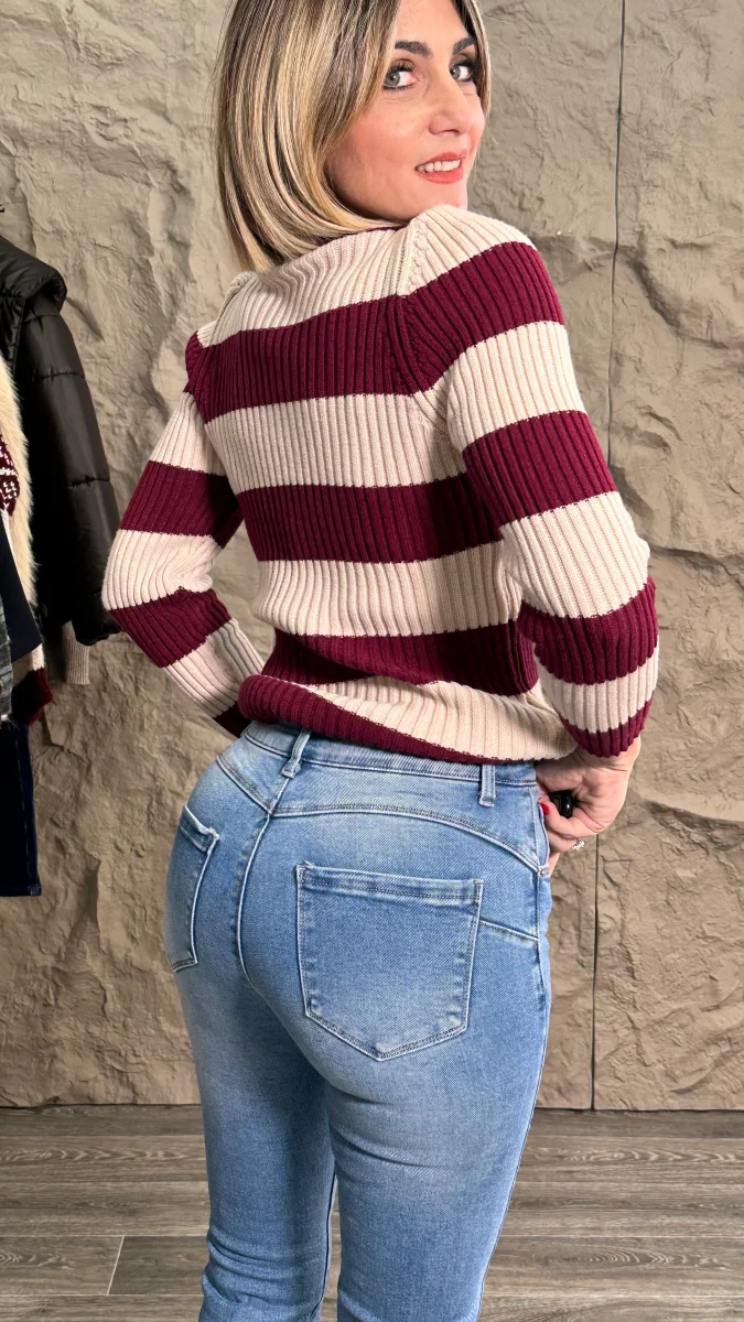 Rosalia indossa la tg38 Rosalia รจ alta 1,59, giro vita 66 cm, fianchi 89 cm Vita media vestibilitร regolare Composizione 70% cotone, 28% poliestere, 2% elastan Jeans a zampa che valorizza la tua silhouette con un effetto snellente immediato di -5kg. Realizzato in tessuto elasticizzato che si adatta perfettamente al tuo corpo, offre comfort senza […]