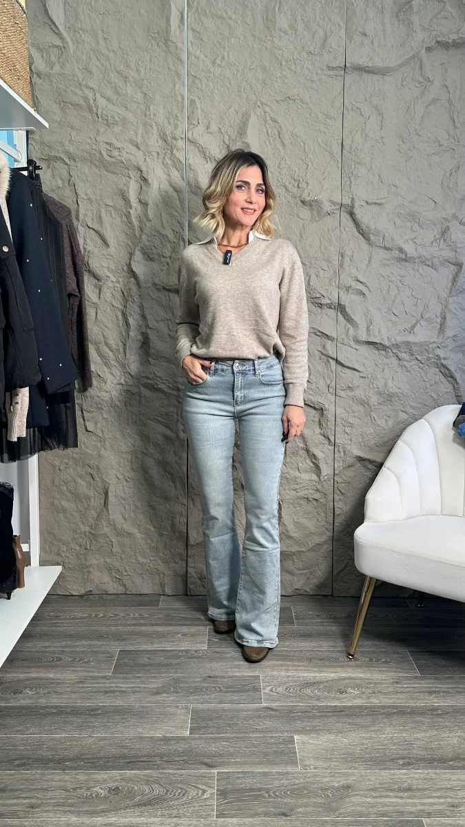 Questi jeans a zampa sono il tuo alleato perfetto per un look snello e affascinante. Grazie all’effetto -5kg, modellano la silhouette regalandoti una figura piรน slanciata e armoniosa. La cintura elastica garantisce il massimo comfort durante tutta la giornata, adattandosi perfettamente al tuo corpo senza compromessi. La trama sabbiata aggiunge un tocco di carattere e versatilitร , perfetta per abbinamenti casual e piรน ricercati. Indossa la fiducia in te stessa con stile.