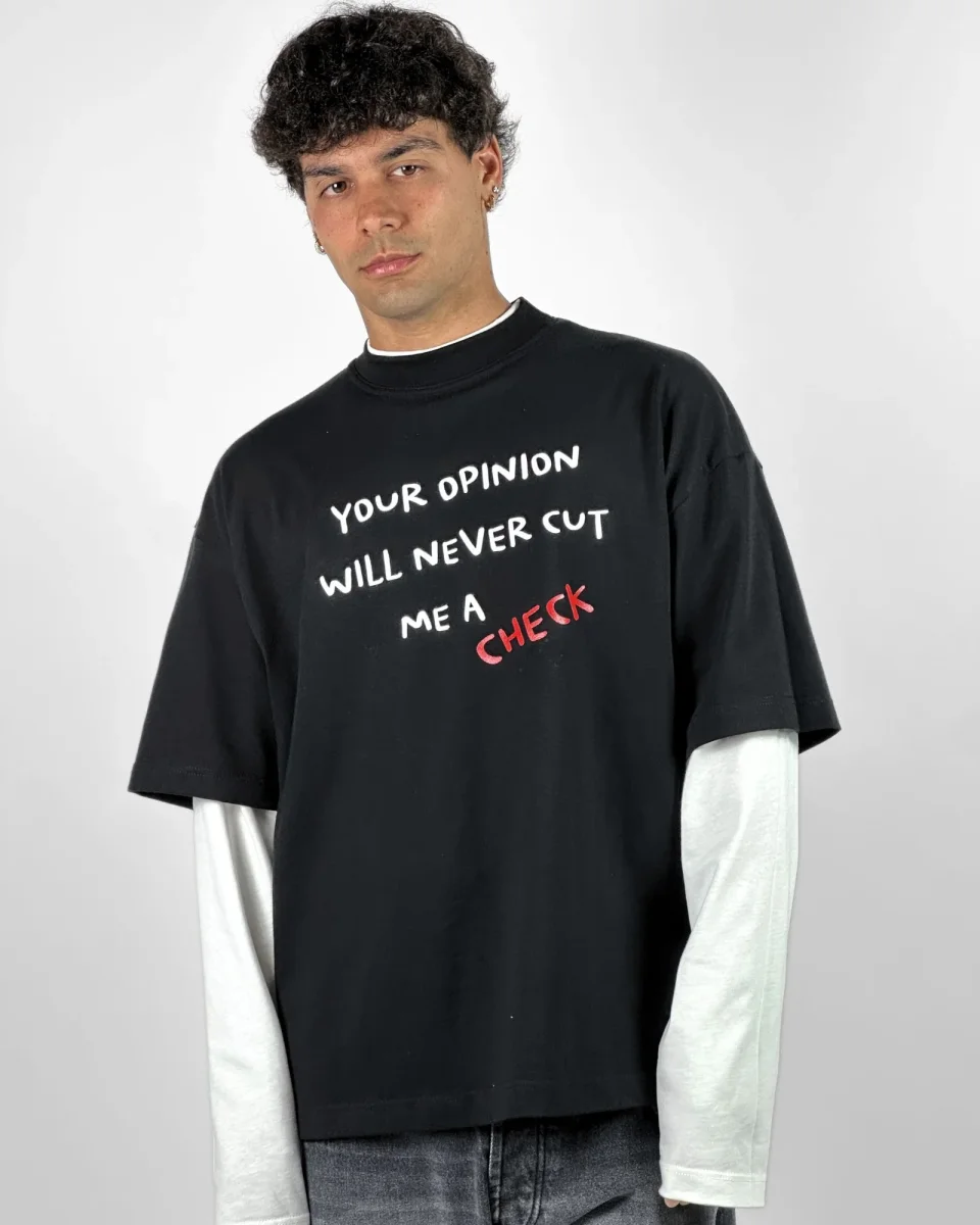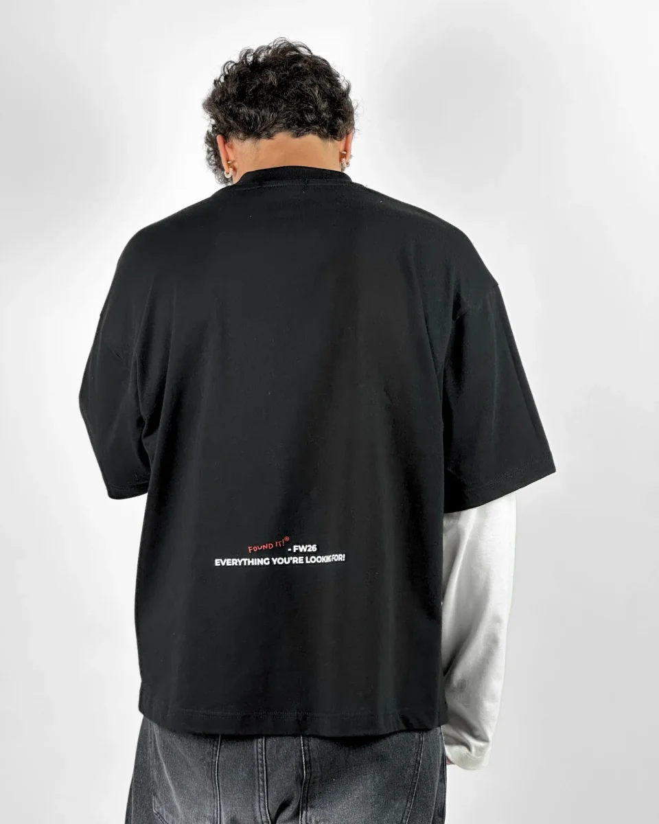 -100% Cotton, 220 GSM. Made In Italy -Fit Boxy and Cropped -Double collar -Double-layered sleeve -Uniesx -Screen print front and retro Male model: 173cm-71kg, size M