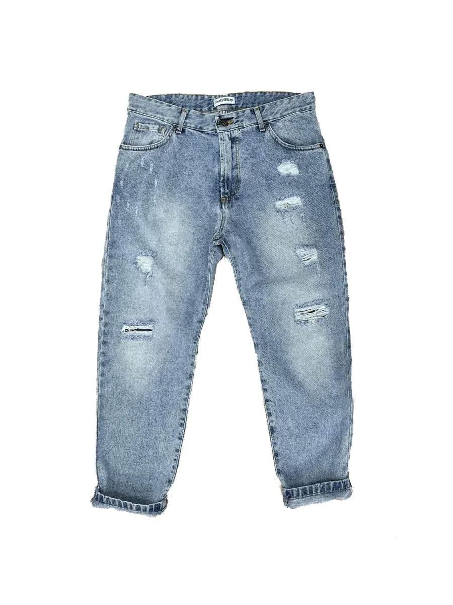 LOOSE BLUE LIGHT JEANS CON FINTI STRAPPI