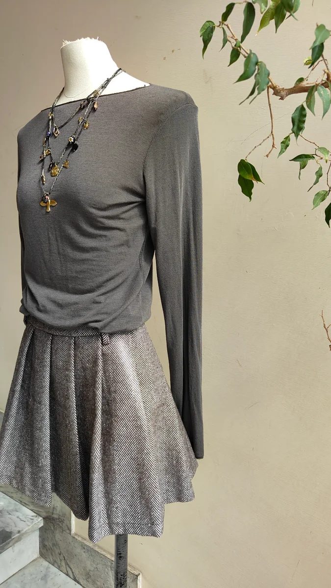 Maglia Essential manica lunga Descrizione prodotto:Una maglia dal taglio essenziale e raffinato, perfetta come base per costruire look versatili e contemporanei. La linea semplice e la morbidezza del tessuto la rendono un capo immancabile nel guardaroba quotidiano. Grazie alla sua vestibilitร comoda ed elegante, รจ ideale da indossare con gonne, pantaloni sartoriali o sotto giacche […]