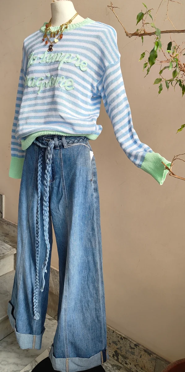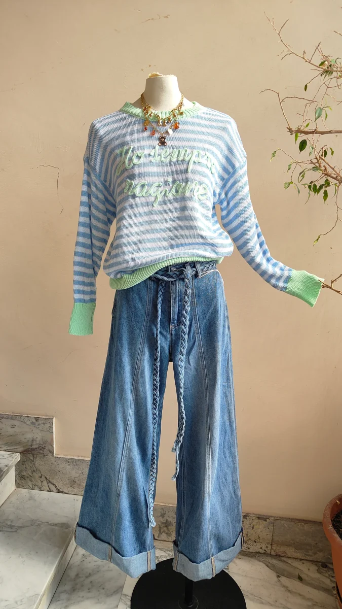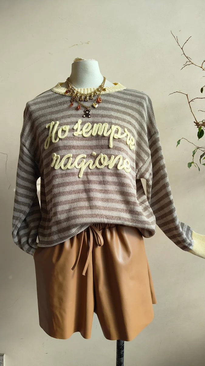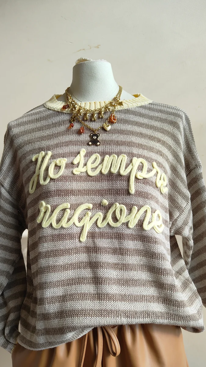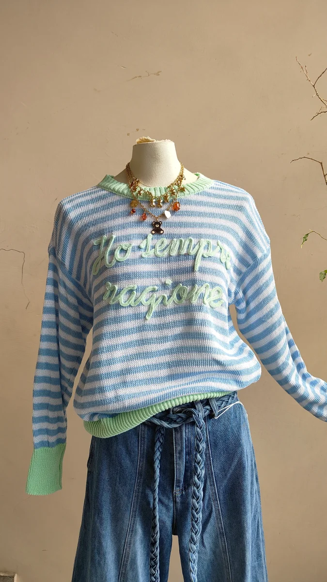 Una maglia leggera e confortevole, perfetta per dare carattere agli outfit quotidiani. Il design a righe รจ arricchito da una scritta in rilievo sul davanti che rende il capo originale e riconoscibile, mantenendo allo stesso tempo uno stile casual e facile da abbinare.