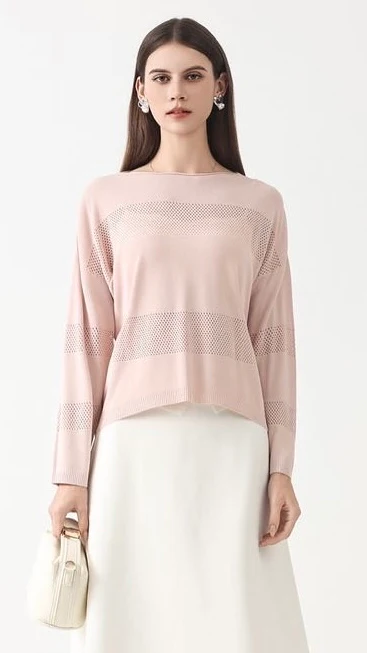 Eleganza discreta e comfort quotidiano si incontrano nella maglia Serena, un capo essenziale dal design raffinato. Presenta una lavorazione a righe traforate che dona leggerezza e un tocco di femminilitร .