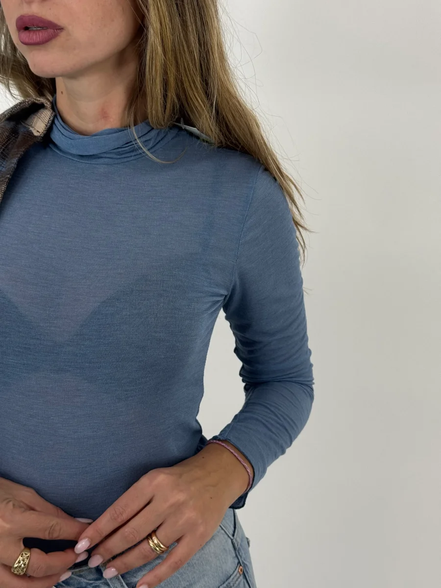 MAGLIETTINA COLLO ALTO MISTO CASHMERE AZZURRO POLVERE