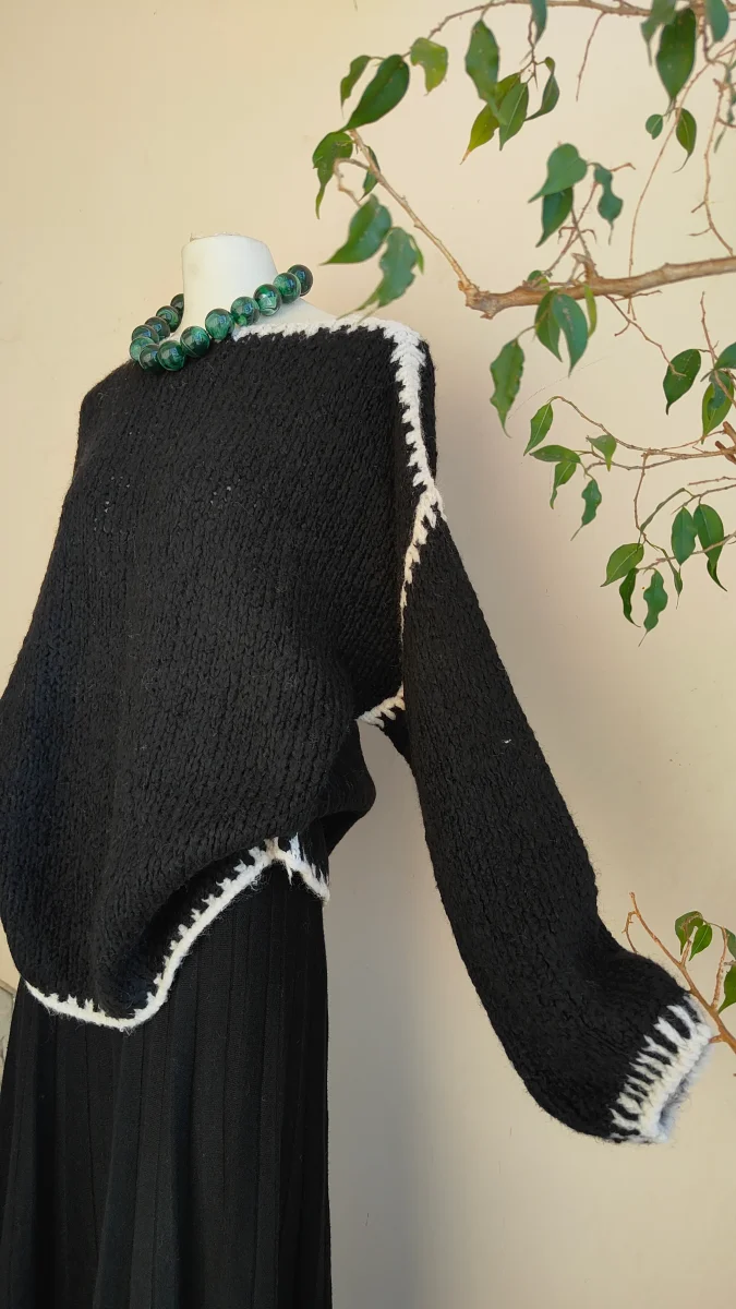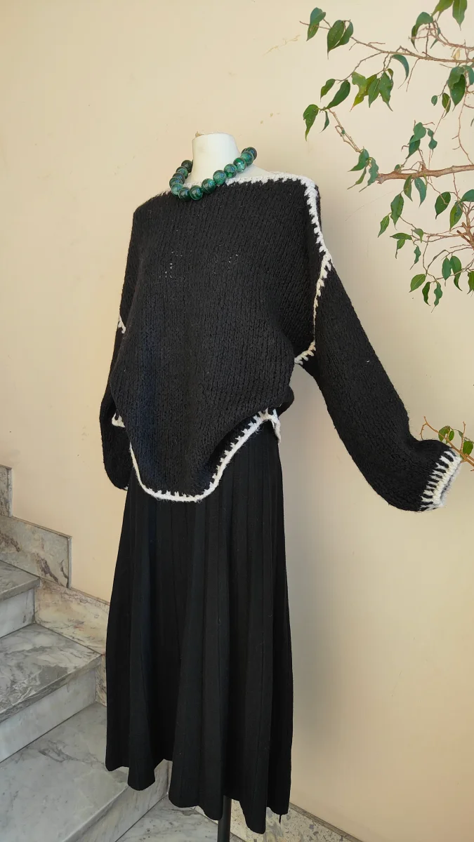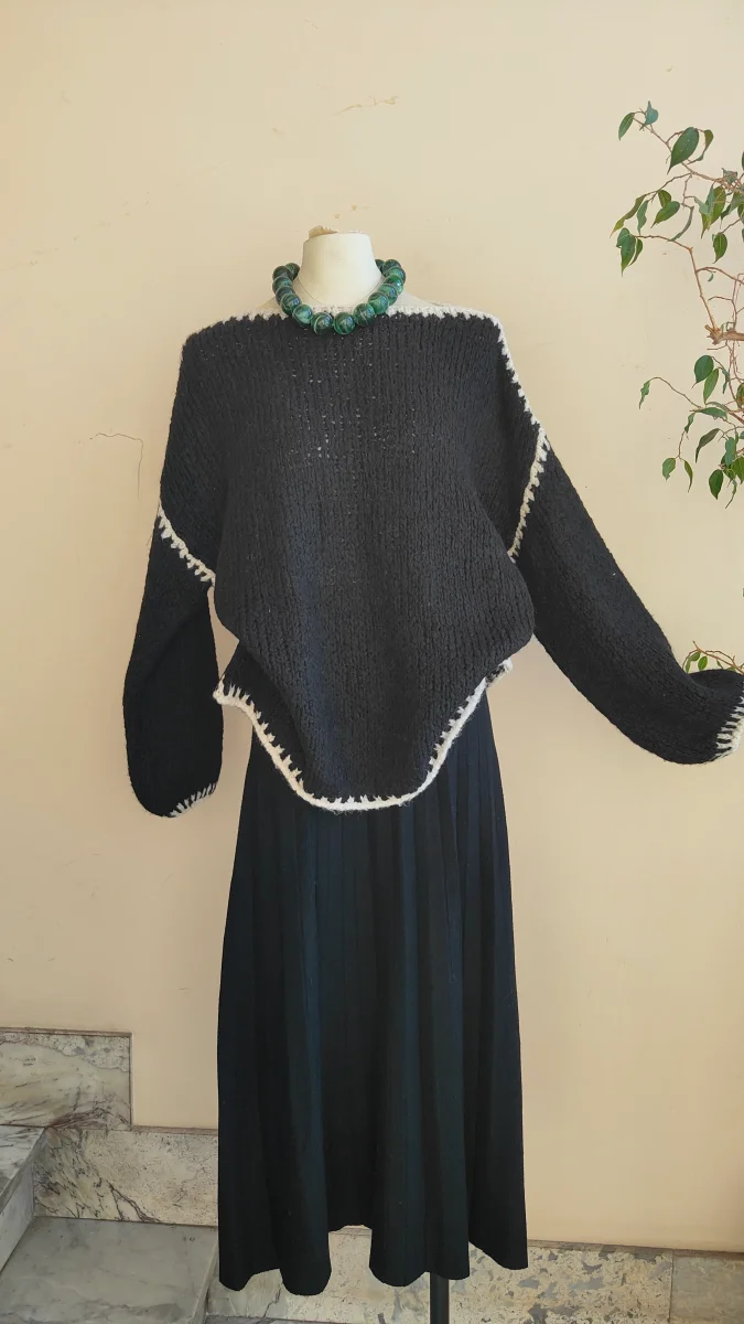 Maglione morbido e avvolgente, caratterizzato da delicati bordi a contrasto che ne esaltano il design. Il dettaglio ondulato dona un tocco femminile e raffinato, rendendolo un capo versatile da indossare ogni giorno con naturale eleganza.